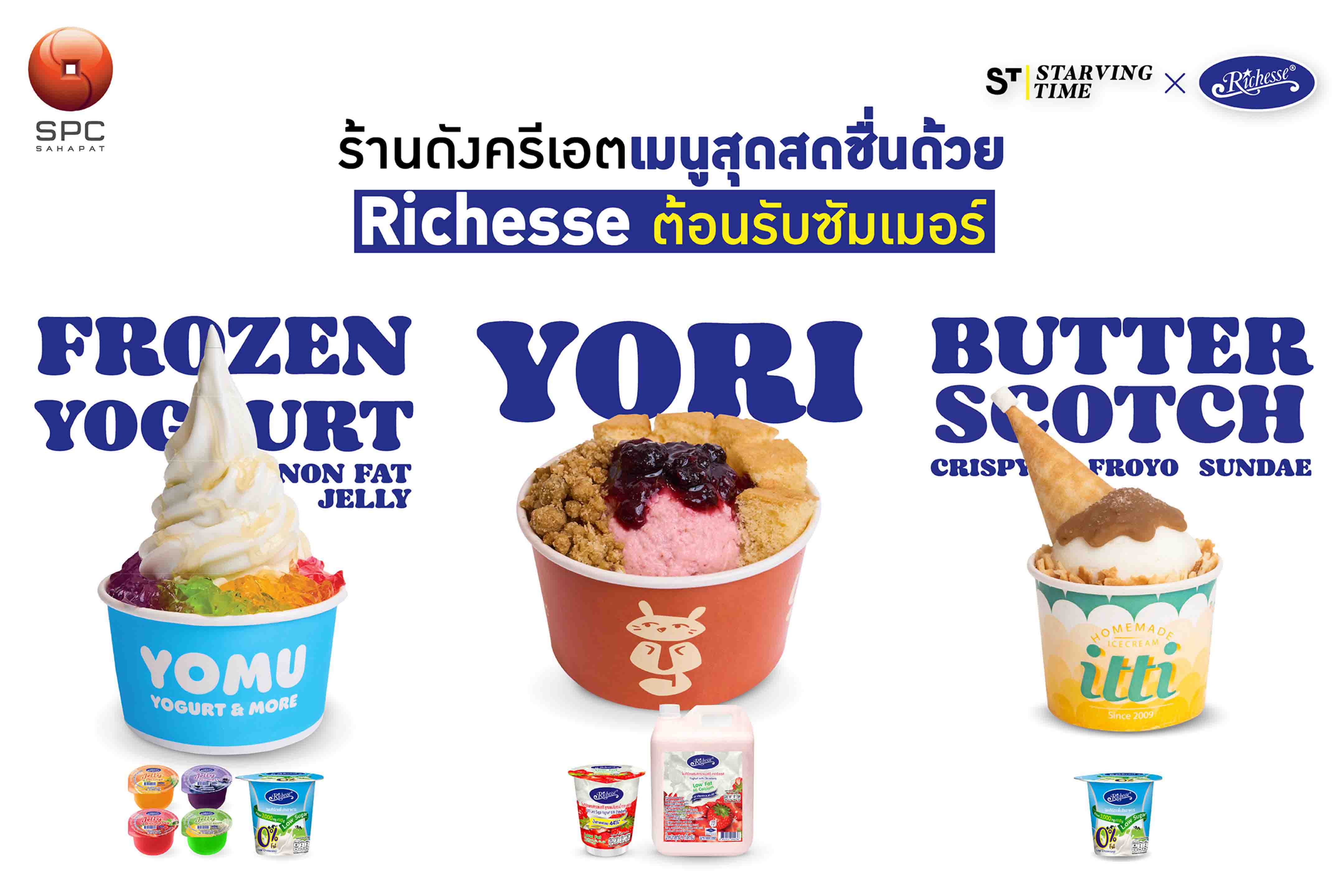 กรุงเทพฯ-บริษัท สหพัฒนพิบูล จำกัด (มหาชน) หรือ SPC ผู้จัดจำหน่ายสินค้าอุปโภคบริโภคชั้นนำของไทย ขอเสิร์ฟความสดชื่นแบบเฮลท์ตี้รับหน้าร้อนด้วยการ คอลแลบ กับเพจรีวิวอาหารชื่อดัง Starvingtime และ 3 ร้านขนมสุดฮิต เปิดตัวแคมเปญ “Richesse Summer Creation” ที่นำผลิตภัณฑ์โยเกิร์ตเพื่อสุขภาพแบรนด์ ‘Richesse’ (ริชเชส) มาสร้างสรรค์เป็นเมนูสุดพิเศษ รสชาติอร่อย สดชื่น มีเอกลักษณ์และดีต่อสุขภาพ ต้อนรับฤดูร้อนแบบจัดเต็ม พร้อมวางจำหน่ายแบบ Limited Edition ตั้งแต่เมษายน – พฤษภาคม 2568 นี้เท่านั้น