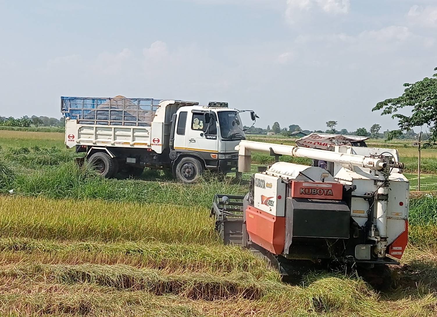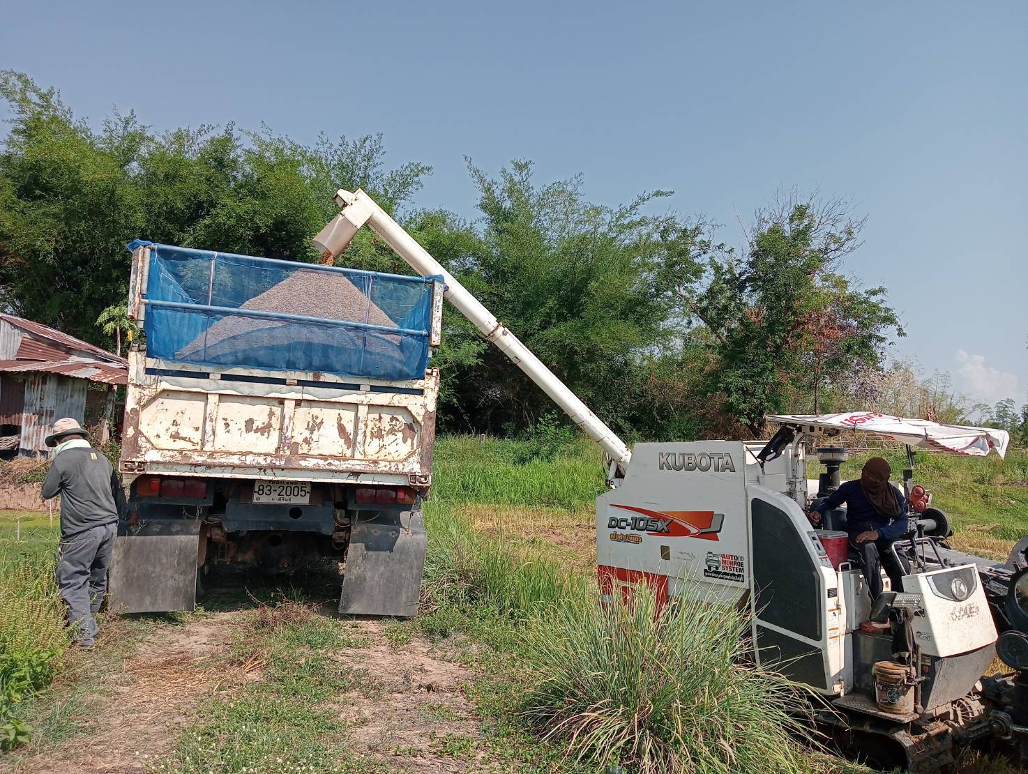 วันที่ 30 เมษายน 2568 จากการติดตามบรรยากาศการเก็บเกี่ยวผลผลิตข้าวนาปรัง พื้นที่ อ.ยางตลาด และอ.เมืองกาฬสินธุ์ ที่เป็นต้นน้ำและได้รับน้ำจากคลองชลประทาน โครงการส่งน้ำและบำรุงรักษาลำปาว (เขื่อนลำปาว) พบว่ากำลังเร่งเก็บเกี่ยวข้าวกันอย่างคึกคัก เนื่องจากรวงข้าวได้อายุเก็บเกี่ยว และต้องเร่งเก็บเกี่ยวก่อนที่จะมีฝนตกลงมา ที่อาจจะจะทำให้เกิดภาวะน้ำท่วมฉับพลัน หรือทำให้รวงข้าวหัก เมล็ดร่วงหล่นเสียหาย ทำให้ผู้ประกอบการรถเกี่ยวข้าวแทบไม่มีเวลาพักผ่อน ต้องเร่งเกี่ยวข้าวตลอดวันและกลางคืน โดยคิดราคาเกี่ยวข้าวไร่ละ 600 บาท