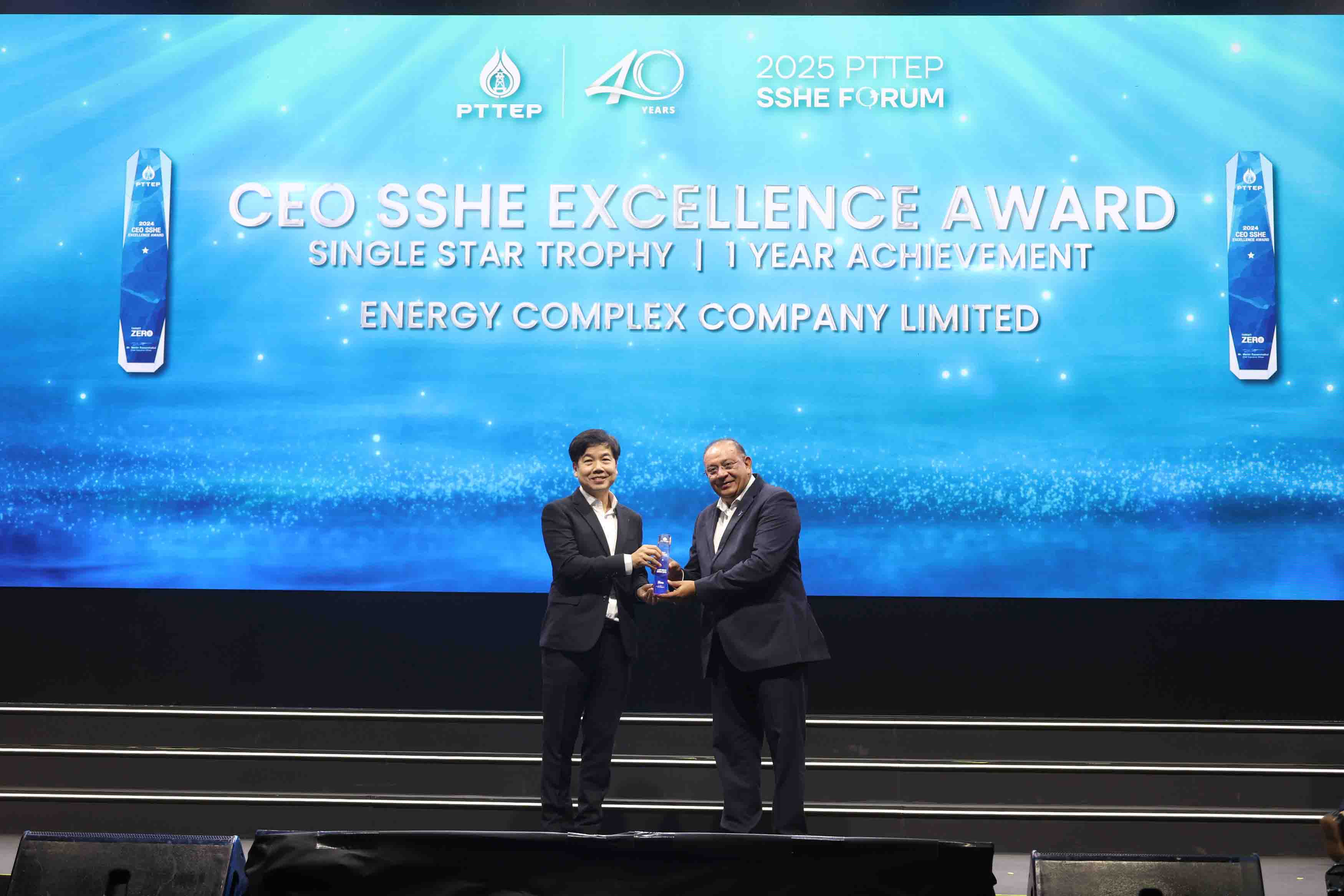 กรุงเทพฯ-คุณศิรศักดิ์ จันเทรมะ กรรมการผู้จัดการใหญ่ บริษัท เอนเนอร์ยี่ คอมเพล็กซ์ จำกัด (EnCo) เข้ารับรางวัล CEO SSHE Excellence Award 2024 ในงาน PTTEP SSHE Forum 2025 จัดโดย บริษัท ปตท.สำรวจและผลิตปิโตรเลียม จำกัด (มหาชน) หรือ ปตท.สผ. ณ พารากอน ฮอลล์ ศูนย์การค้าสยามพารากอน