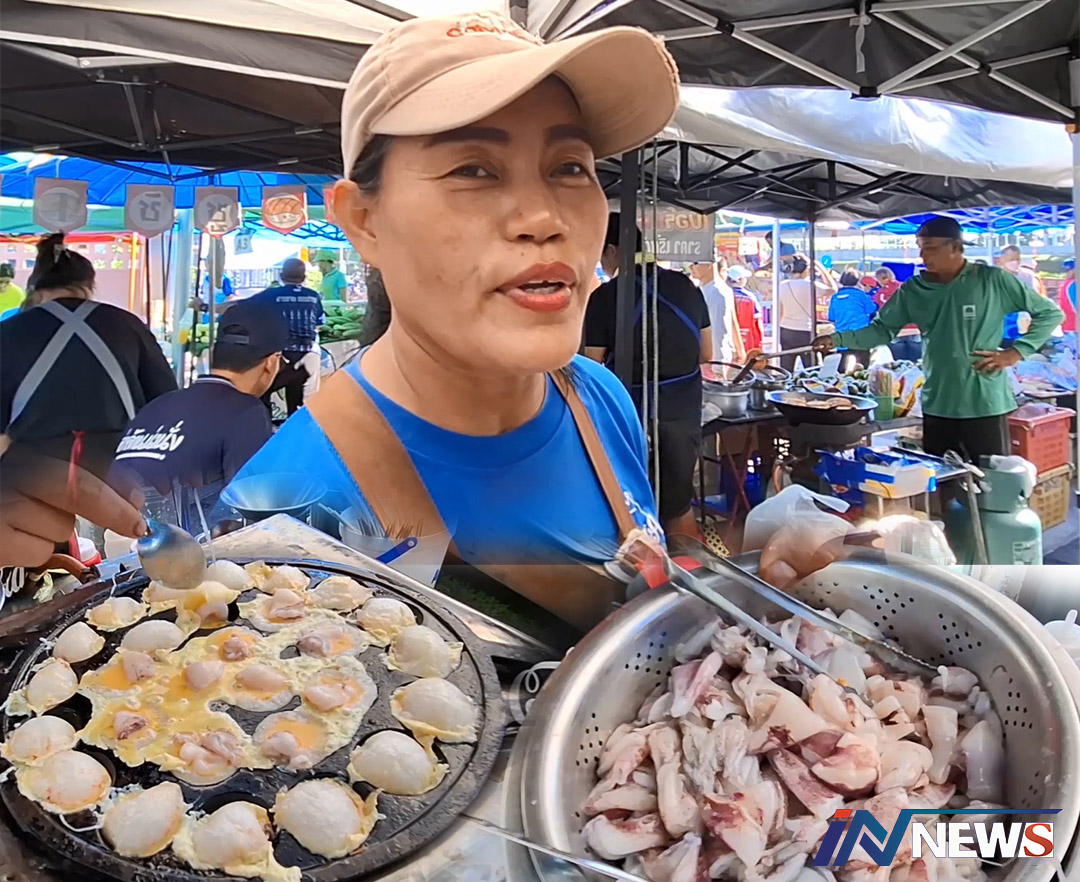 สงขลา-วันนี้ 9 พฤษภาคม 2568 ที่ตลาดนัดหน้าที่ว่าการอำเภอเมืองสงขลา เขตเทศบาลนครสงขลา อ.มือง จ.สงขลา ซึ่งเป็นตลาดนัดที่ประชาชน ชาวสงขลา มาเดินจับจ่ายใช้สอยซื้อสินค้ากันเป็นจำนวนมาก อีกทั้งในวันนี้วันพืชมงคล เป็น วันหยุดราชการอีกด้วย นายกิติธัช หวังเดหวา อายุ 53 ปี และนางจันจิรา เลขะสม อายุ 48 ปี สองสามีภรรยาอารมณ์ดี ได้มาเปิดร้านขายหอยครกกิติธัช ซึ่งมีทั้ง หอยครก หมึกครก และกุ้งครก ในราคา เริ่มต้นที่ 30 และ 40 บาท โดยใช้รางในการทำหอยครก 6 ราง เพื่อให้ทันกับลูกค้าที่เข้ามาอุดหนุนอย่างต่อเนื่องตลอดเวลาจนทำแทบไม่ทัน ซึ่งลูกค้าส่วนใหญ่จะเป็นลูกค้าทั้งขาจรและขาประจำ โดยพ่อค้าแม่ค้า จะส่งเสียงเจื้อยแจ้ว หยอกล้อกับลูกค้าอยู่ตลอดเวลาแบบคนอารมณ์ดี ซึ่งเป็นจุดขายจุดหนึ่งที่คนอื่นไม่มี จึงเป็นจุดเด่นในการดึงดูดลูกค้า ให้แวะเข้ามาซื้อได้เป็นอย่างดี จากอัธยาศัยของคนอารมณ์ดี ที่ได้ฟังแล้วก็ต้องอมยิ้ม