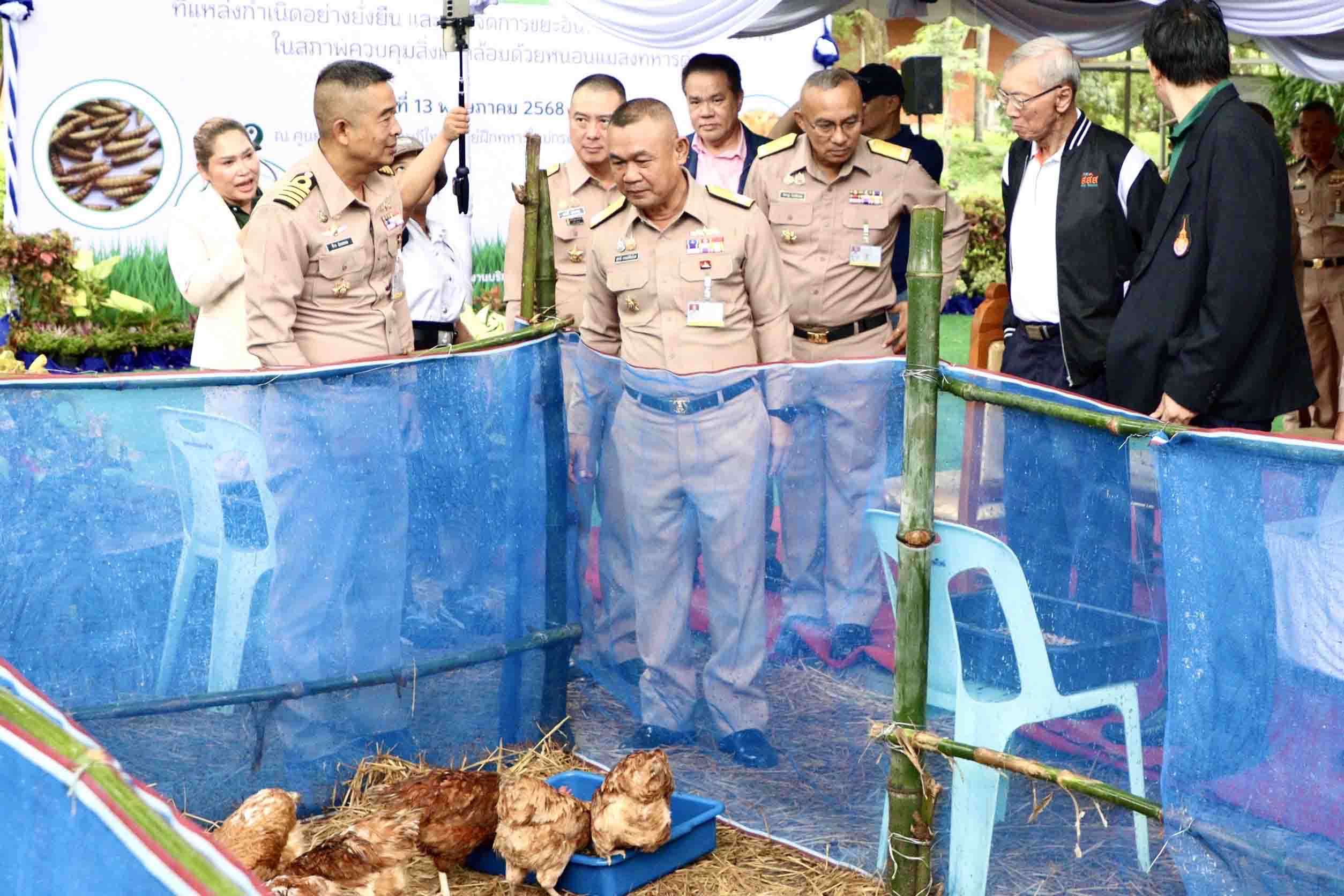 ชลบุรี-ศูนย์ฝึกทหารใหม่ กรมยุทธศึกษาทหารเรือ ร่วมจัดพิธีเปิดโครงการนำร่องในการจัดการขยะมูลฝอยที่แหล่งกำเนิดอย่างยั่งยืน และการจัดการอินทรีย์ด้วยเทคโนโลยีชีวภาพในสภาพควบคุมสิ่งแวดล้อมด้วยแมลงทหารดำ