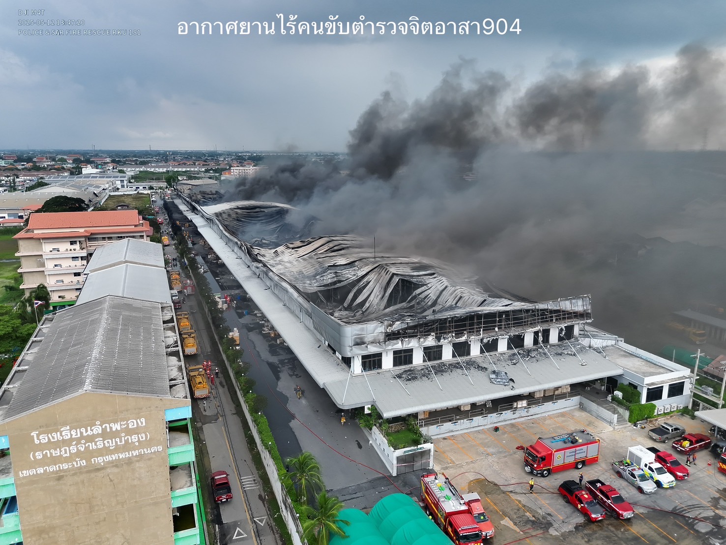 นายสุริยชัย รวิวรรณ ผู้อำนวยการสำนักป้องกันและบรรเทาสาธารณภัย (สปภ.) กทม. กล่าวถึงความคืบหน้าการระงับเหตุเพลิงไหม้โกดังเก็บสินค้าโรงงานผลิตเฟอร์นิเจอร์ในซอยฉลองกรุง 55 เขตลาดกระบังว่า สปภ. ได้รับแจ้งจากศูนย์วิทยุผ่านฟ้าว่ามีเหตุเพลิงไหม้ภายในโกดัง ซอยฉลองกรุง 55 ถนนฉลองกรุง ใกล้เคียงโรงเรียนลำพะอง (ราษฎร์จำเริญบำรุง) จึงได้นำกำลังเจ้าหน้าที่ดับเพลิงและกู้ภัยพร้อมด้วยรถดับเพลิงเข้าระงับเหตุดังกล่าว โดยที่เกิดเหตุมีลักษณะเป็นโกดังขนาดใหญ่และมีชั้นใต้ดินสำหรับเก็บสินค้าประเภทพลาสติก เฟอร์นิเจอร์ห้องครัว และบานซิงค์ ต้นเพลิงเกิดขึ้นบริเวณชั้นใต้ดิน ซึ่งมีวัตถุเชื้อเพลิงจำพวกเม็ดพลาสติก ไม้ ทินเนอร์ และกล่องกระดาษจำนวนมาก ทำให้การเข้าดับเพลิงเป็นไปอย่างยากลำบาก ประกอบกับมีกลุ่มควันจากชั้นใต้ดินลอยขึ้นไปด้านบนของอาคาร ทำให้เกิดเพลิงลุกไหม้อย่างรุนแรง และมีกลุ่มควันดำขนาดใหญ่ลอยออกมาจากจุดเกิดเหตุอย่างต่อเนื่อง ส่งผลให้ประชาชนบริเวณใกล้เคียงได้รับผลกระทบจากการสูดดมและบางส่วนต้องอพยพมาอยู่ที่ศูนย์พักพิงชั่วคราวที่สำนักงานเขตลาดกระบังจัดตั้งขึ้น ได้แก่ โรงเรียนลำพะอง โรงเรียนวัดทิพพาวาส ศูนย์พัฒนาเด็กเล็กชุมชนวัดทิพพาวาส และหอประชุมสำนักงานนิคมอุตสาหกรรมลาดกระบัง ส่วนสาเหตุและค่าเสียหายอยู่ระหว่างการสอบสวนของสถานีตำรวจนครบาล (สน.) ฉลองกรุง
