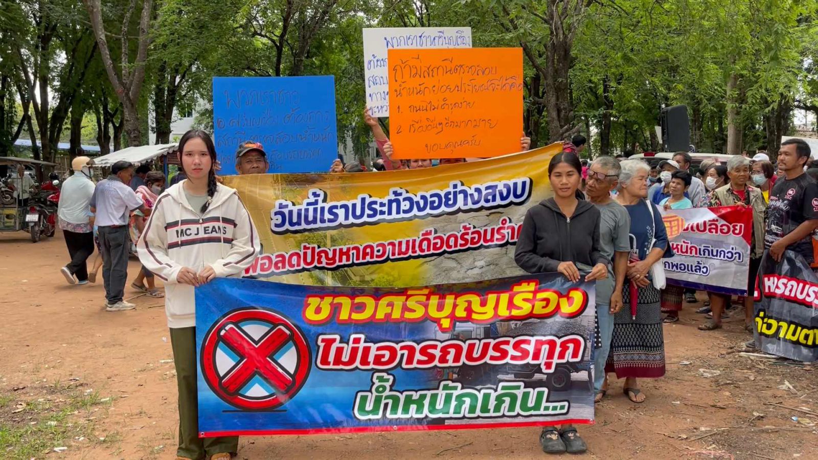 ม็อบบุกยื่นร้องถนนพังจากรถแบกน้ำหนัก พร้อมเสนอตั้งด่านตาชั่งถาวร
