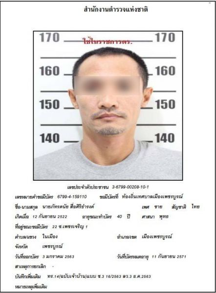 จากรายงานนักโทษเด็ดขาดชาย ภัทรดนัย สื่อศิริธำรง อายุ 42 ปี ติดคุกในคดีครอบครองยาบ้าเพื่อจำหน่าย จำนวน 4,000 เม็ดพร้อมปืน 5 กระบอก และนักโทษเด็ดขาดชาย ภัทรดนัย สื่อศิริธำรง อายุ 42 ปี ต้องถูกเพิ่มโทษตามระเบียบของกรมราชทัณฑ์ต่อไป