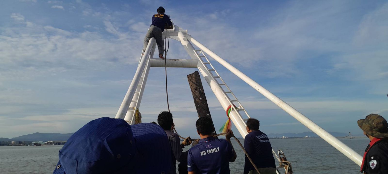 สนง.เจ้าท่าภูมิภารสงขลาจับมือกับประมง ตำรวจน้ำร่วมรื้อเสาโพงพางตกค้าง
