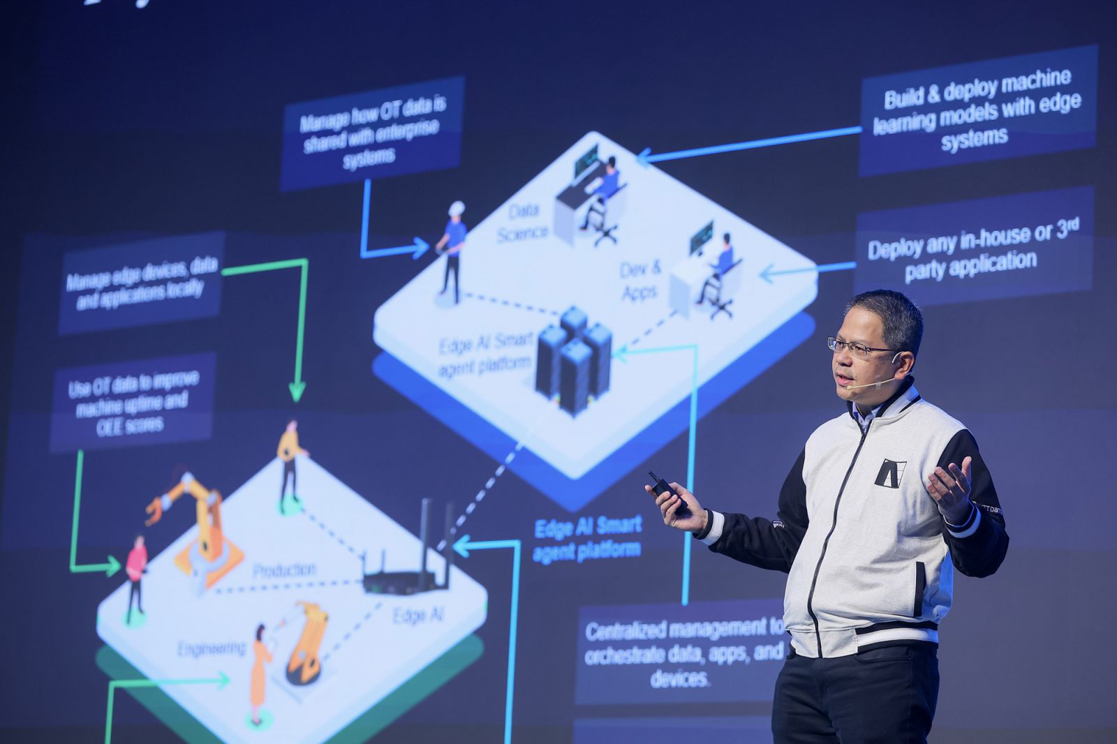 นายธนพงษ์ อิทธิสกุลชัย ประธานเจ้าหน้าที่บริหารประจำประเทศไทยของ NTT DATA กล่าวเปิดงานโดยเน้นถึงวิสัยทัศน์ของ NTT DATA ในการขับเคลื่อนอนาคตการพัฒนา IT แบบ Full-Stack เพื่อสนับสนุนการเติบโตทางธุรกิจของลูกค้ากว่า 5,000 ราย ครอบคลุม 16 อุตสาหกรรมในปีที่ผ่านมา โดยเฉพาะด้าน Data Center ที่ปัจจุบันมีศักยภาพรองรับการใช้งานรวมกว่า 20 เมกะวัตต์ สำหรับปีนี้ ปัจจัยสำคัญที่บริษัทฯ ให้ความสำคัญคือ Agentic AI ซึ่งถูกจัดเป็นเทคโนโลยีเชิงกลยุทธ์อันดับต้น ๆ ขององค์กรชั้นนำทั่วโลก โดยจะเข้ามาช่วยพัฒนาและปรับปรุงการทำงานใน 4 ด้านหลัก ได้แก่ 1) ยกระดับการมีส่วนร่วมของพนักงาน 2) เสริมสร้างประสบการณ์ที่ดีให้กับลูกค้า 3) เพิ่มประสิทธิภาพด้านต้นทุน และ 4) ปรับปรุงและพัฒนาโครงสร้างพื้นฐานให้ทันสมัย