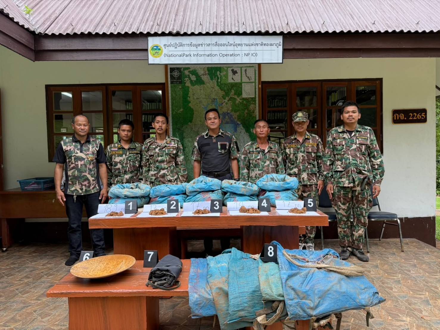 เจ้าหน้าที่จึงจัดกำลังซุ่มจับกุม โดยเริ่มภารกิจตั้งแต่วันที่ 1 กันยายน 2568 พร้อมปลอมตัวเป็นชาวบ้านเดินเท้าเข้าป่าลึก ใช้เวลาเฝ้ารอถึง 3 วัน 2 คืน กระทั่งเวลา 03.30 น. วันที่ 2 กันยายน 2568 พบชาย 5 คนเดินลงมาจากเขา สะพายเป้มีน้ำหนักผิดปกติ เจ้าหน้าที่จึงแสดงตัวเข้าจับกุม แต่คนร้ายตกใจ ทิ้งสิ่งของทั้งหมดก่อนวิ่งหนีเข้าป่า อาศัยความมืดหลบหนีไปได้อย่างหวุดหวิด