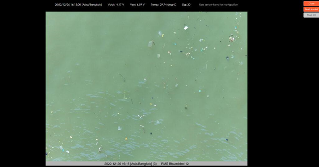 ตัวอย่างภาพถ่ายจากกล้องตรวจจับขยะในแม่น้ำเจ้าพระยา