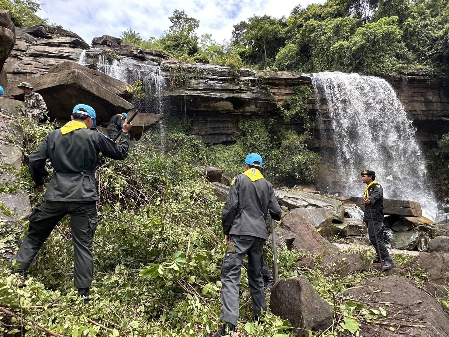 ชาววังน้ำเขียว-อช.ทับลานร่วมจิตอาสา ทำความสะอาด'น้ำตกม่านฟ้า'