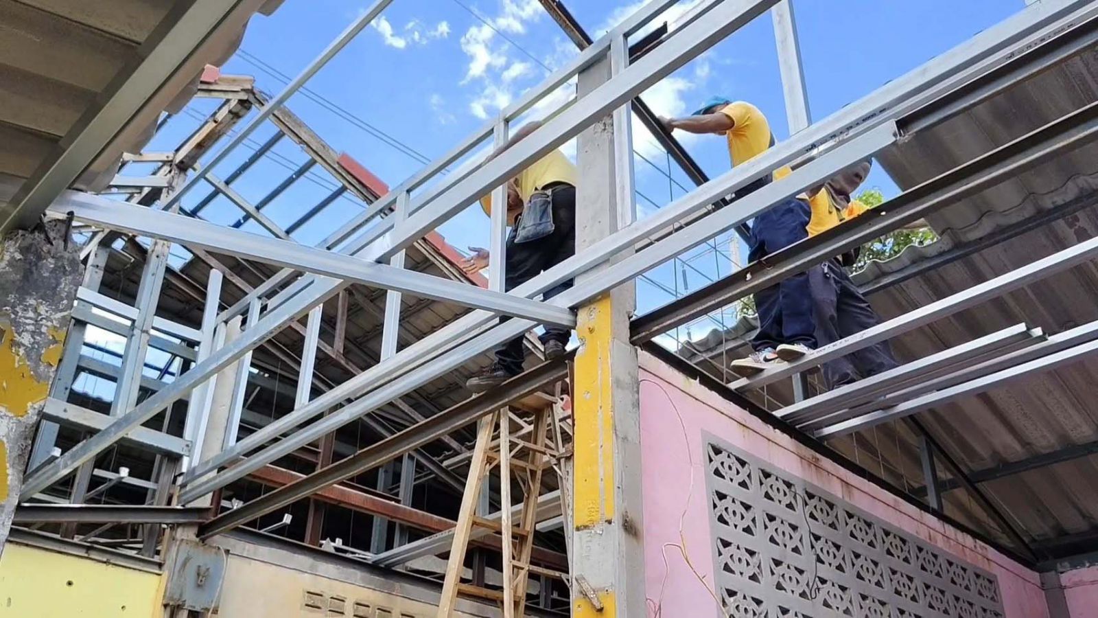 กิจกรรมจิตอาสาครั้งนี้ยังครอบคลุมถึงการพัฒนาภูมิทัศน์พื้นที่สาธารณะ การทำความสะอาด และการซ่อมแซมอาคารชมรมผู้สูงอายุตำบลเสาธงชัย ซึ่งได้รับความเสียหายจากเหตุระเบิดในช่วงที่ผ่านมา โดยอาคารมีผนังเป็นรูทะลุ ประตูเหล็กบานเลื่อนฉีกขาด และหลังคาและโครงเหล็กพังเสียหายบางส่วน ไม่สามารถใช้งานได้ตามปกติ