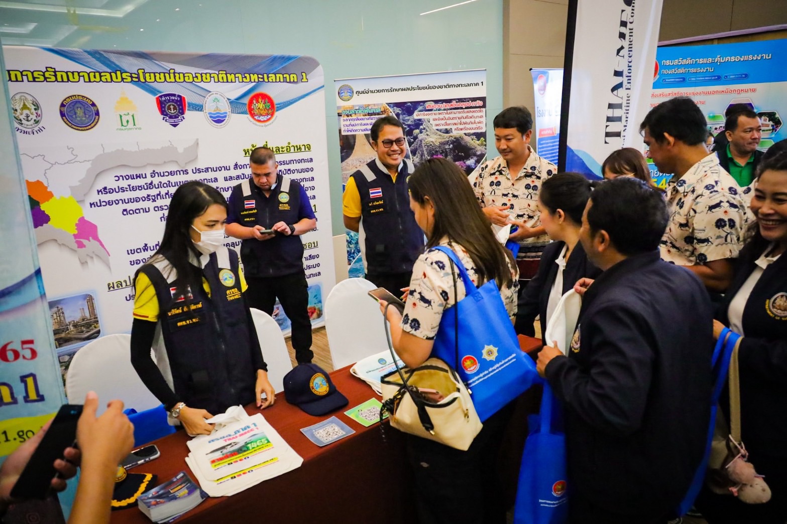 ในโอกาสนี้ ศรชล.ภาค 1 ได้ร่วมจัดบูทนิทรรศการให้ความรู้เกี่ยวกับภารกิจของศูนย์อำนวยการรักษาผลประโยชน์ของชาติทางทะเล พร้อมเผยแพร่ช่องทางการแจ้งเหตุเมื่อประสบอุบัติเหตุหรือเหตุฉุกเฉินทางทะเล เพื่อสร้างการรับรู้และส่งเสริมความปลอดภัยให้แก่แรงงานภาคประมงในพื้นที่