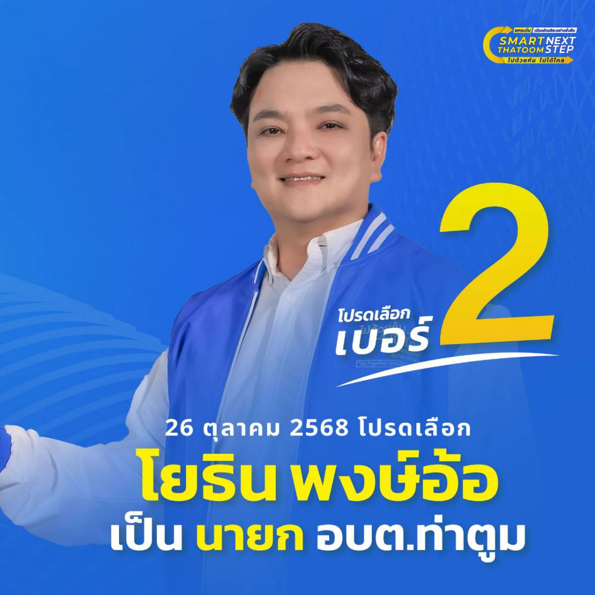 ด้านนายโยธิน พงษ์อ้อ (แบ๊งค์) ผู้สมัคร์เบอร์ 2 ระบุนโยบายผ่านเพจ ว่า ... นโยบาย 8 ด้าน เพื่อยกระดับท่าตูมเมืองอัจฉริยะอย่างยั่งยืน 1 โครงสร้างพื้นฐาน ทันสมัยมีคุณภาพ ถนนดี ไฟสว่าง น้ำประปามีคุณภาพยกระดับมาตรฐานถนนและท่อระบายนํ้า ปรับปรุงโครงสร้างถนนและระบบระบายน้ำ ให้ได้มาตรฐาน เพิ่มความปลอดภัยและลด ปัญหาน้ำท่วมขังขยายช่องจราจรเพื่อการสัญจรที่สะดวก เพิ่มจำนวนช่องทางจราจรเพื่อรองรับการ เดินทางที่คล่องตัว และลดความหนาแน่น ของการจราจรปรับปรุงและต่อเติมรางระบายนํ้าทั่วตำบล แก้ปัญหาน้ำท่วมขังและนํ้ารอการระบายอย่าง ยั่งยืน