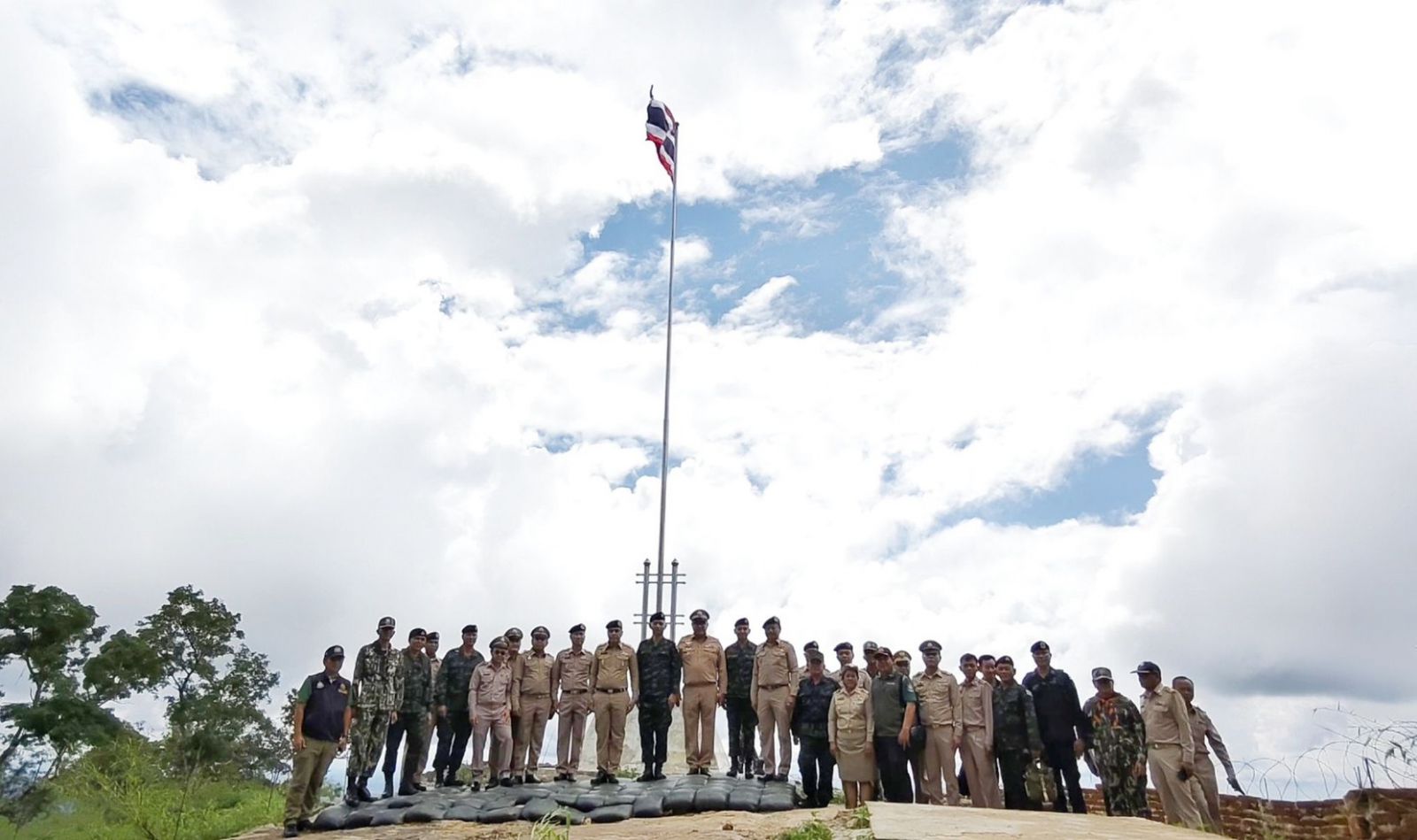 พร้อมกันนี้ คณะได้มอบสิ่งของอุปโภคบริโภคแก่เจ้าหน้าที่ทหาร ที่ปฏิบัติหน้าที่ดูแลความสงบในพื้นที่บนภูมะเขือ เพื่อเป็นขวัญและกำลังใจแก่ผู้ปฏิบัติงานในพื้นที่ห่างไกล ก่อนร่วมกันถ่ายภาพแห่งประวัติศาสตร์ความภูมิใจกับธงชาติไทยที่โบกสะบัดเหนือยอดภูมะเขือ.
