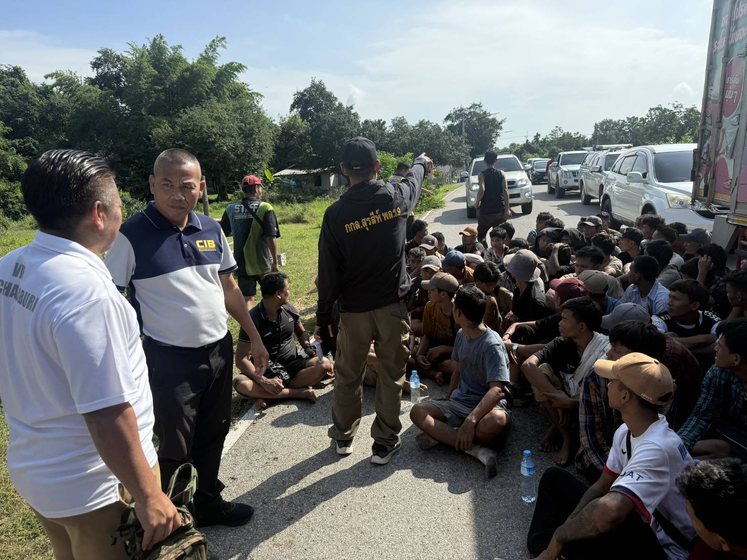 เมื่อเวลา 08.00 น. วันที่ 11 ตุลาคม 2568 นายอธิสรรค์ อินทร์ตรา ผู้ว่าราชการจังหวัดกาญจนบุรี ได้รับการประสานจาก พ.ต.ท.โจ เสาร์ประโคน สว.ส.ทล.6 กก.2 บก.ทล. ให้สนับสนุนกำลังฝ่ายปกครองในการสกัดจับรถบรรทุก 6 ล้อ ตู้ทึบต้องสงสัยไม่ติดป้ายทะเบียน ซึ่งคาดว่าลักลอบขนแรงงานต่างด้าวชาวเมียนมา