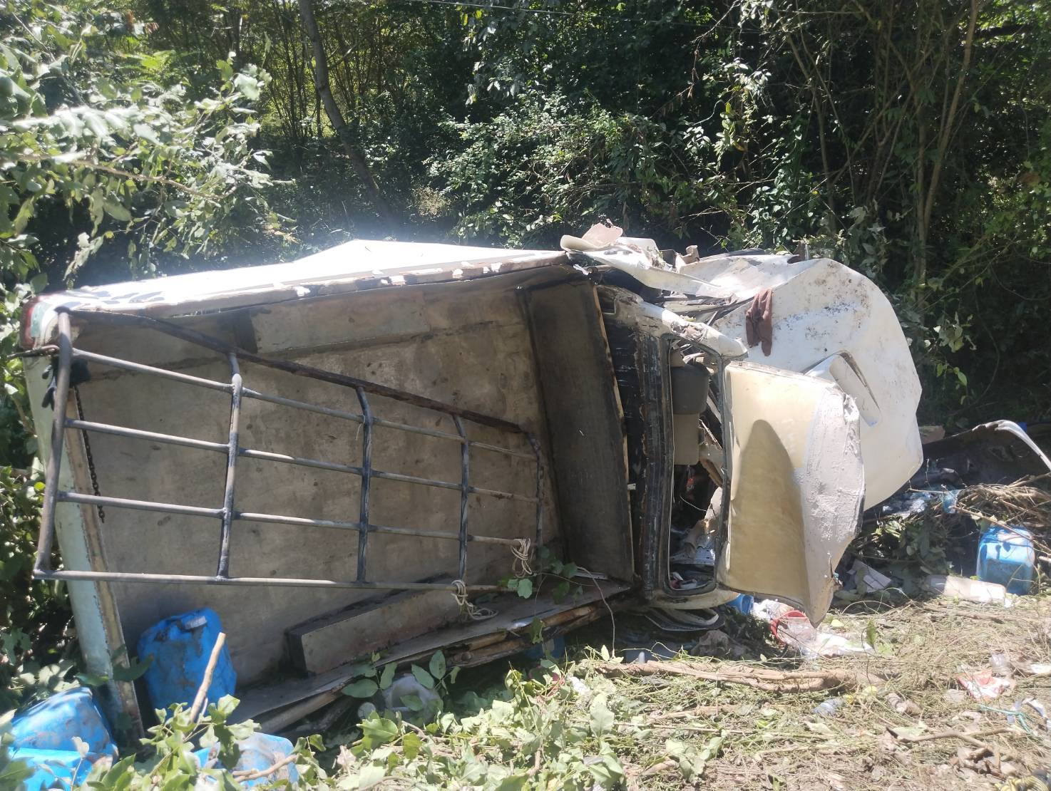 หนุ่มใหญ่ขนถังแกลลอนน้ำยาเต็มกระบะ เหนื่อยวูบหลับในชนต้นไม้ตายคา