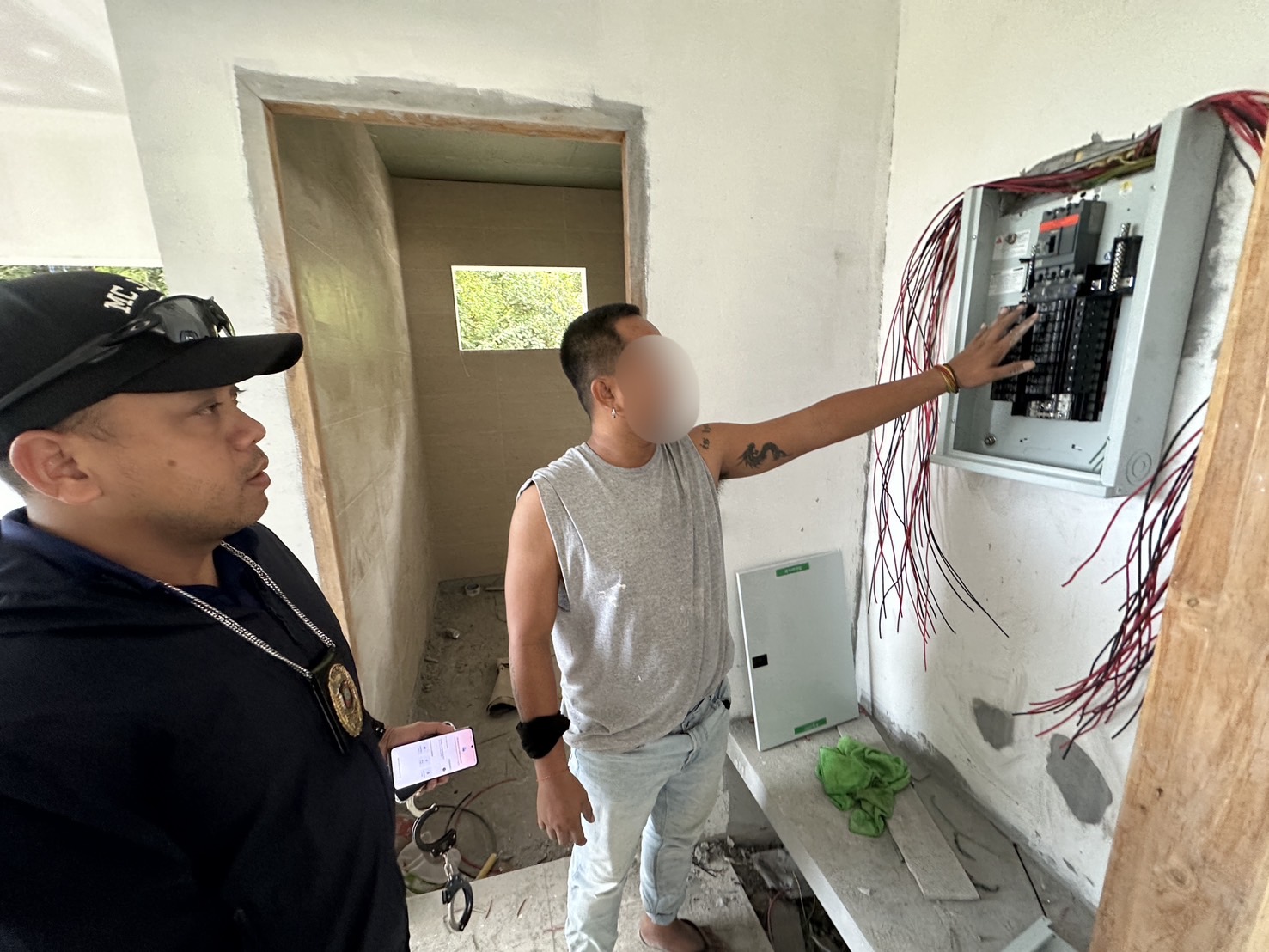 การจับกุมเริ่มขึ้น หลังได้รับแจ้งจากพลเมืองดีว่า มีชายชาวเมียนมาร์ลักลอบประกอบอาชีพช่างไฟฟ้า เจ้าหน้าที่จึงเข้าตรวจสอบและพบ นายเย เมียต จอ และ นายเทะ ซอ ทเว กำลังทำงานติดตั้งระบบไฟอยู่ในบ้านที่ก่อสร้างเสร็จแล้ว ทั้งสองรายยอมรับสารภาพว่า ได้รับค่าจ้างเป็นเงินสดวันละ 500 บาท จากชายชาวอิสราเอลรายหนึ่ง ให้มาทำงานเป็นช่างไฟ ทั้งที่ในใบอนุญาตทำงานระบุอาชีพเป็น "กรรมกร" เท่านั้น จึงถูกแจ้งข้อหา “เป็นบุคคลต่างด้าวทำงานนอกเหนือจากที่มีสิทธิ์จะทำได้ (ช่างไฟ)”