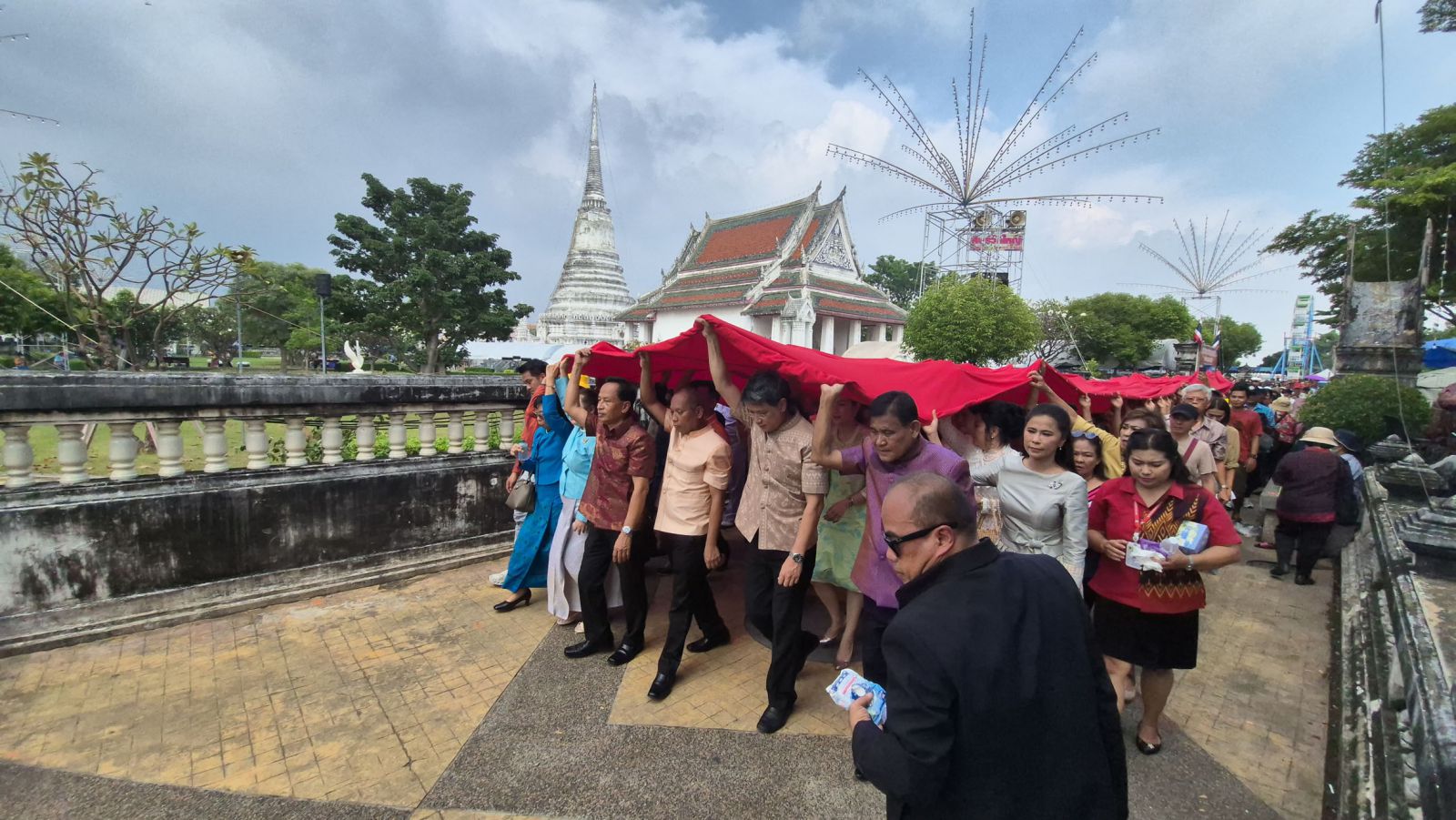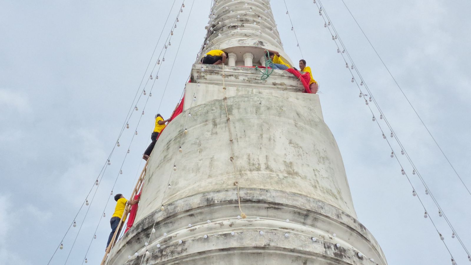 เมื่อเวลา 14.30 น.วันที่ 12 ต.ค.68 นาย สยาม ศิริมงคล ผู้ว่าราชการจังหวัดสมุทรปราการ เป็นประธานอัญเชิญผ้าแดงห่มองค์พระสมุทรเจดีย์ ทำพิธีทักษิณาวรรต รอบองค์พระสมุทรเจดีย์ 3 รอบ เพื่อสักการะพระบรมสารีริกธาตุ 12 องค์ ขององค์สมเด็จพระสัมมาสัมพุทธเจ้า ซึ่งบรรจุอยู่ภายในองค์พระสมุทรเจดีย์ ก่อนที่จะส่งมอบให้กับผู้ประกอบพิธีห่มผ้าองค์พระสมุทรเจดีย์ ซึ่งเป็นสมาชิกในตระกูลรุ่งแจ้ง นำขึ้นไปห่มบนคอระฆังขององค์พระสมุทรเจดีย์ โดยมีหัวหน้าส่วนราชการ ทั้งภาครัฐ ภาคเอกชนและประชาชน ร่วมกันประกอบพิธีห่มผ้าองค์พระสมุทรเจดีย์ สำหรับพิธีดังกล่าวจะจัดขึ้นเป็นประจำทุกปี ในวันแรม 5 ค่ำ เดือน 11 ซึ่งปีนี้ตรงกับวันที่ 12 ต.ค.68