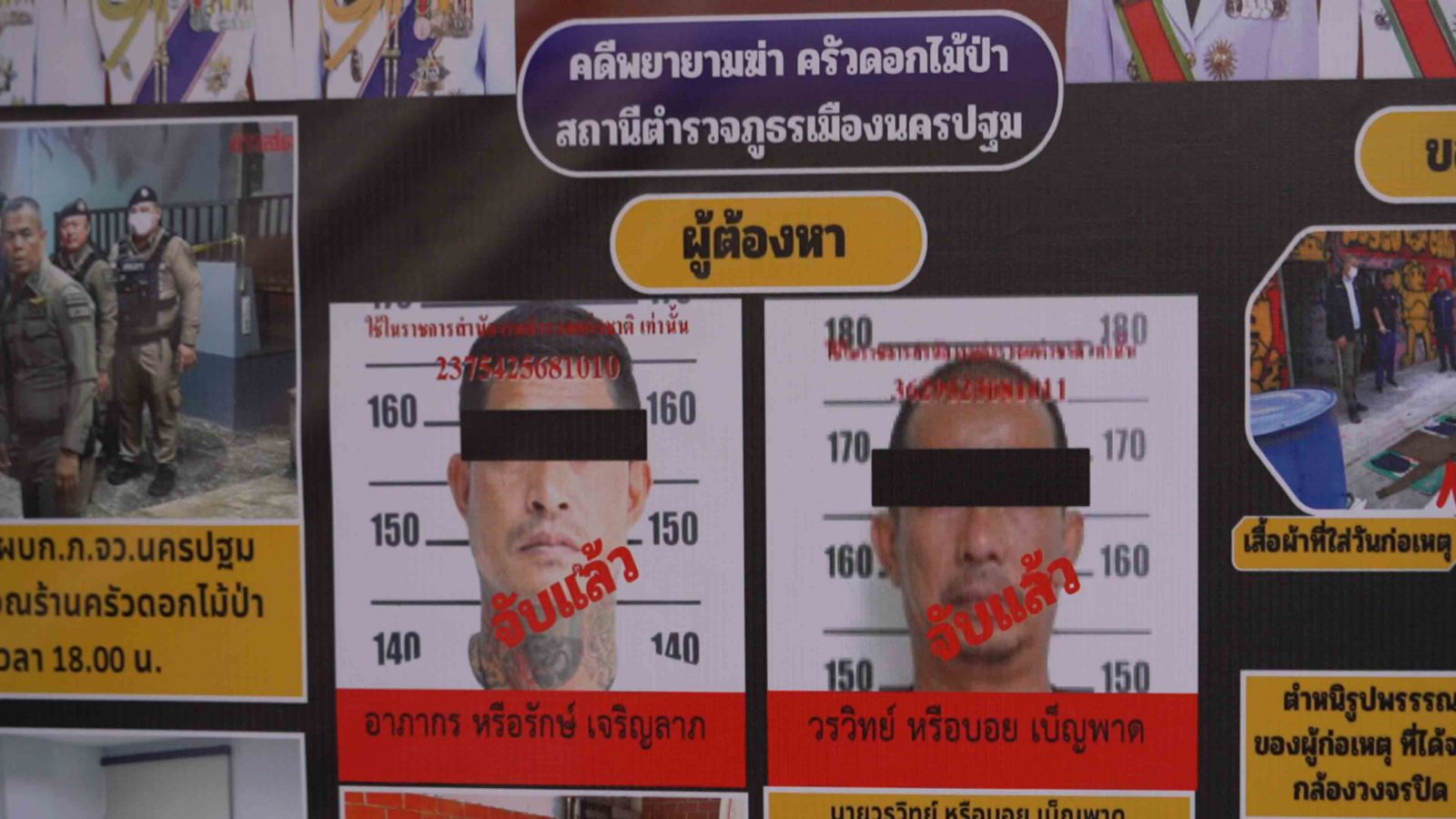ส่วนอีกรายคือ นายวรวิทย์ หรือบอย เบ็ญพาด อายุ 50 ปี ที่อยู่ 81/1 ม.6 ต.เลาขวัญ อ.เลาขวัญ จ.กาญจนบุรี โดยแจ้งข้อกล่าวหาว่า “เป็นผู้ใช้ให้ผู้อื่นกระทำความผิดฐานพยายามฆ่าผู้อื่นโดยไตร่ตรองไว้ก่อน” ตามหมายจับของศาลจังหวัดนครปฐม ที่ จ.1155/2568 ลง 10 ต.ค.2568 โดยจับกุมตัวได้ที่บริเวณรีสอร์ทละลานตา แคมป์ปิ้ง คาเฟ่ ต.ชะอม อ.แก่งคอย จ.สระบุรี