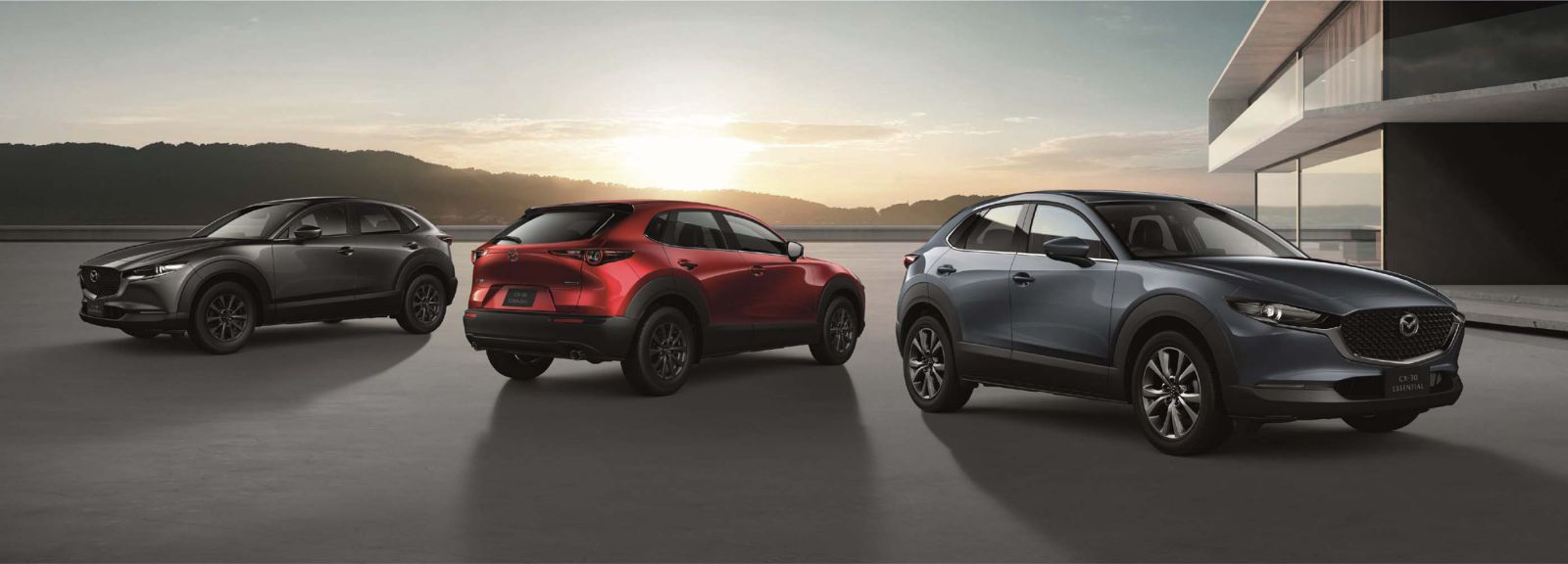 New Mazda CX-30 Essential มาพร้อมรุ่นเริ่มต้นใหม่ และได้รับการออกแบบรุ่นย่อยใหม่ โดยคัดสรรอุปกรณ์ให้เหมาะสมต่อการใช้งานในชีวิตประจำวันทุกรูปแบบ พร้อมราคาใหม่ที่ให้เข้าถึงกลุ่มเป้าหมายได้ง่ายขึ้น เริ่มต้นเพียง 899,000 บาท สง่างามดุจงานศิลปะชิ้นเอกจาก โคโดะ ดีไซน์ ภายใต้คอนเซ็ปต์ “Less is More” เรียบง่ายแต่งดงาม คงไว้ซึ่งความสปอร์ตโฉบเฉี่ยวและทรงพลัง พร้อมระบบควบคุมสมรรถนะการขับขี่อัจฉริยะขั้นสูง GVC Plus เหนือระดับด้วยเครื่องยนต์สกายแอคทีฟเบนซิน 2.0 ลิตร ทั้งแรงและประหยัดน้ำมัน ให้กำลังสูงสุด 165 แรงม้า พร้อมการควบคุมการขับขี่ที่แม่นยำและสมดุล ด้วยสกายแอคทีฟแพลตฟอร์มเจเนอเรชั่นใหม่ อัดแน่นด้วยเทคโนโลยีความปลอดภัยรอบคัน และฟังก์ชั่นความปลอดภัยและความสะดวกสบายครบครัน ที่พร้อมตอบโจทย์กลุ่มเป้าหมายในยุคใหม่ได้อย่างลงตัว