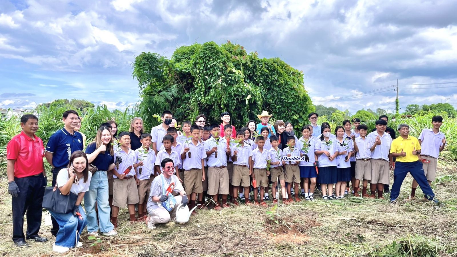 นอกจากนี้ ทุกท่านที่เยี่ยมชมยังได้ร่วมกิจกรรม “ปลูกต้นกระดาษเพื่อทุนการศึกษา” ให้กับน้อง ๆ โรงเรียนบ้านท่าตูม จังหวัดปราจีนบุรี โดยต้นกล้าทุกต้นที่ปลูกในกิจกรรมจะเติบโตเป็นทุนการศึกษาต่อไปในอนาคต และที่พิเศษคือ ทาง One Bangkok ได้นำปุ๋ยหมักชีวภาพที่ผลิตจากเศษอาหารภายในโครงการ มามอบให้ใช้บำรุงต้นกล้ากระดาษในโครงการดังกล่าว เพื่อให้เติบโตและเป็นสัญลักษณ์ของการจัดการสิ่งเหลือใช้สู่การสร้างอนาคตที่ดีกว่า สอดคล้องกับที่ดั๊บเบิ้ล เอ ให้ความสำคัญเรื่อง "No Waste is Wasted" พร้อมกันนี้ ยังได้ร่วมมอบอุปกรณ์การเรียน และหน้ากากอนามัย Double A Care ใช้สำหรับป้องกันการแพร่ระบาดของเชื้อโรคในช่วงที่สภาพอากาศแปรปรวนให้กับน้อง ๆ เพื่อสุขอนามัยที่ดีอีกด้วย กิจกรรมในครั้งนี้ ถือเป็นการผสานพลังความร่วมมือระหว่างภาคธุรกิจและชุมชนในการสร้างคุณค่ากลับคืนสู่สังคมอย่างเป็นรูปธรรม