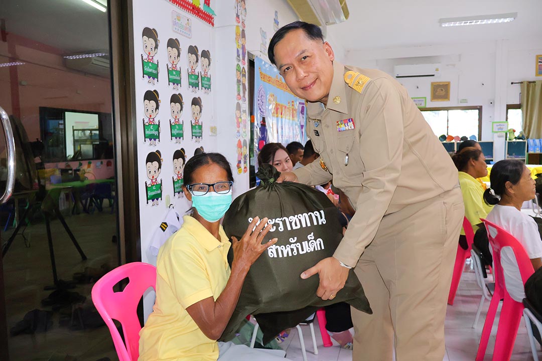 องคมนตรีเชิญสิ่งของพระราชทานมอบ ให้ผู้ประสบอุทกภัยจังหวัดสิงห์บุรี