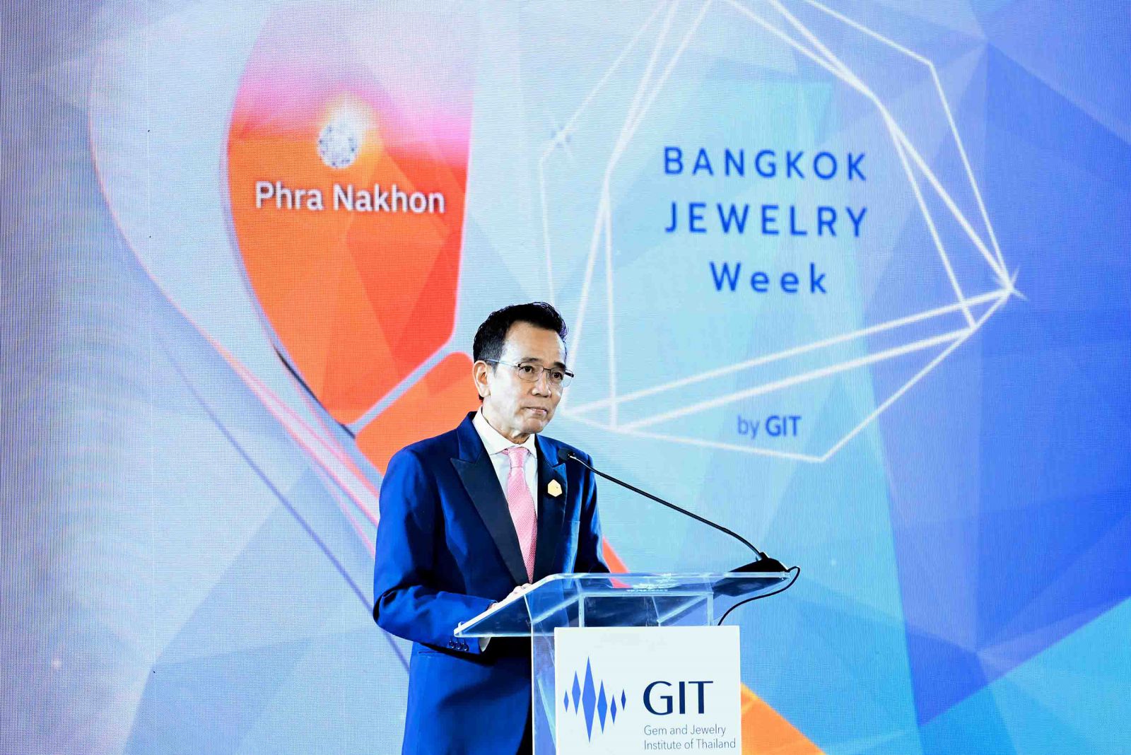 นายสุเมธ ประสงค์พงษ์ชัย ผู้อำนวยการสถาบัน GIT กล่าวในพิธีเปิดงานว่า อุตสาหกรรมอัญมณีและเครื่องประดับของไทยถือเป็นหนึ่งในอุตสาหกรรมหลักที่มีบทบาทสำคัญต่อระบบเศรษฐกิจ โดยสร้างรายได้จากการค้า การลงทุน และการส่งออก รวมมูลค่ากว่า 580,000 ล้านบาทต่อปี อีกทั้งยังเป็นแหล่งสร้างอาชีพให้แก่ประชาชนจำนวนมาก โดยเฉพาะในเขตบางรัก สัมพันธวงศ์ และพระนคร ซึ่งเป็นศูนย์กลางการค้าด้านอัญมณีและเครื่องประดับที่เก่าแก่ของประเทศ อันสะท้อนถึงรากฐานแห่งภูมิปัญญาและความประณีตทางศิลปหัตถกรรมที่สืบทอดจากรุ่นสู่รุ่น GIT ในฐานะสถาบันหลักภายใต้การกำกับดูแลของกระทรวงพาณิชย์จึงมีภารกิจสำคัญในการพัฒนาและยกระดับมาตรฐานอุตสาหกรรมอัญมณีและเครื่องประดับไทยให้ทัดเทียมนานาชาติ โดยในปี 2568 นี้