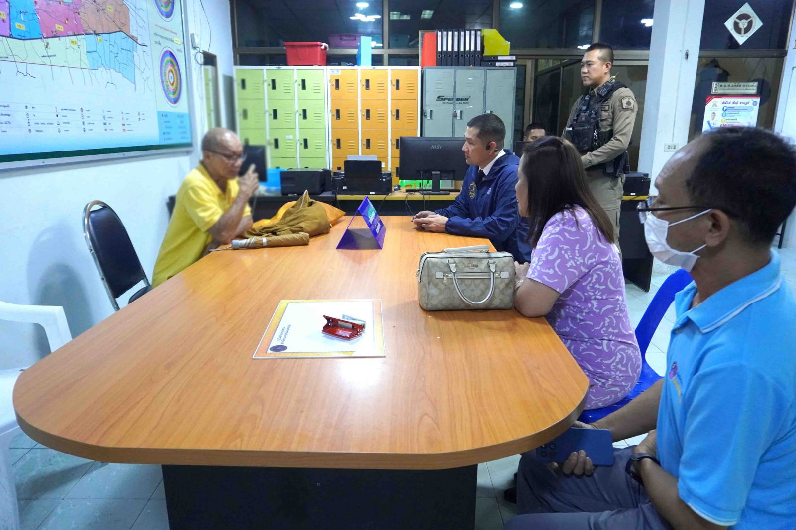 นายเอ๋ (นามสมมติ) อายุ 36 ปี เจ้าหน้าที่มูลนิธิเป๋าเก็งเต็ง ซอยบริพัตร บอกว่าเพิ่งเคยเห็นนายเรืองชัย เข้ามาที่ศาลเจ้าจีนในวันนี้ซึ่งปกติจะไม่มีคนพลุกพล่าน แต่วันนี้ได้มีการรวมตัวกันของเจ้าหน้าที่เพื่อเตรียมตัวในการเข้าสู่ช่วงเทศกาลถือศีลกินเจ ซึ่งที่นี่จะมีคนเข้ามาเป็นจำนวนมากเพราะประตูไม่ได้ปิด คาดว่านายเรืองชัยน่าจะขับขี่รถจักรยานยนต์โดยแต่งกายเป็นชุดปกติทั่วไปก่อนจะมาเปลี่ยนเป็นชุดพระจีนแล้วเดินออกไปขอข้าวกินที่บริเวณถนนเทศา ซอย 1 ก่อนจะมีหลวงพี่น้ำฝนและตำรวจเข้ามาติดตามจับกุม และตนเองจำได้ว่าเขาเคยถูกจับเรื่องการแต่งกายเป็นพระและเป็นพระอาศัยอยู่ที่บ้านมาแล้ว ไม่คิดว่าจะมาถึงสถานที่แห่งนี้อีก
