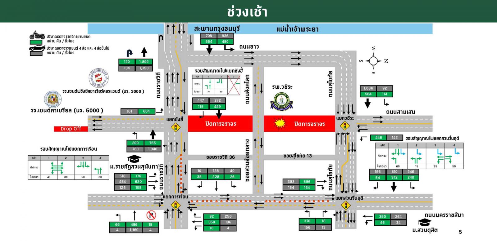• ปรับช่องจราจร-ไฟสัญญาณช่วงเร่งด่วน (05.30-09.00 น. และ 14.00-17.00 น.)
