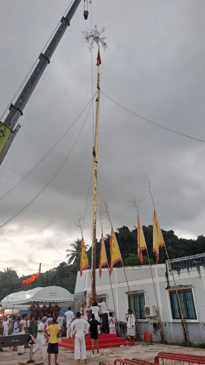ชาวพังงาร่วมยกเสาโกเต้งสูงที่สุดในโลก ที่ศาลเจ้าแม่ม่าจ้อโป๋เริ่มถือศีล-กินผัก