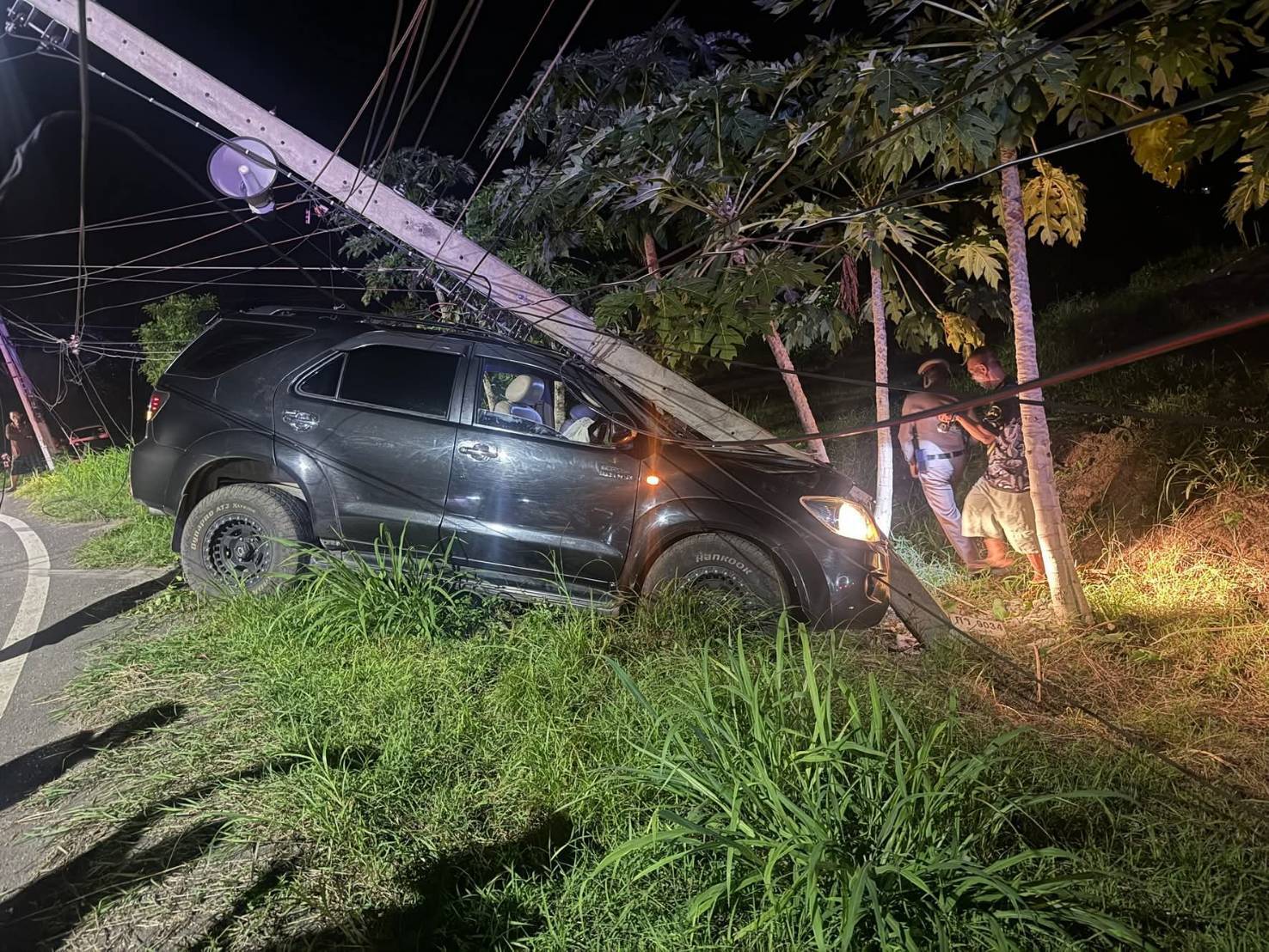 ระทึก!ฟอร์จูเนอร์ซิ่งหนีตร.ทล.กว่า30กม. ขนแรงงานเถื่อน15คนแหกโค้งชนเสาไฟ