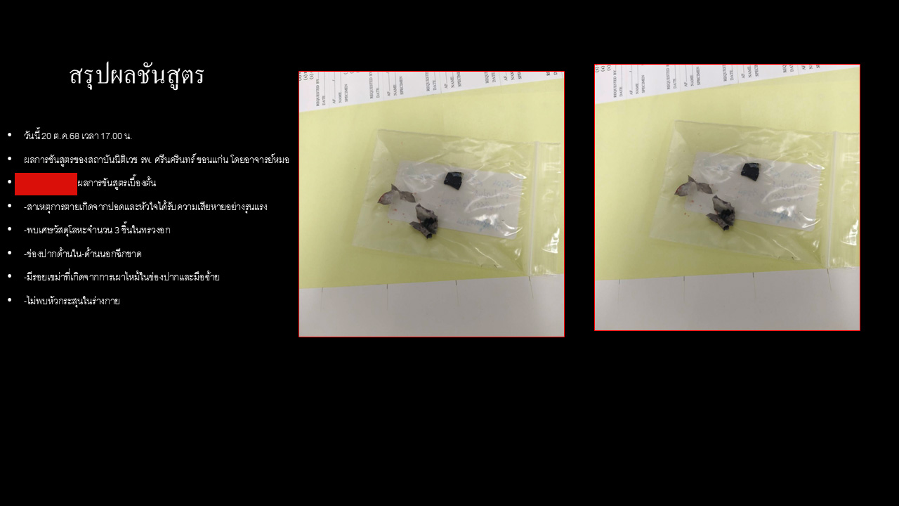 ในวันนี้ พ.ต.ท.ภควัต บงแก้ว รองผู้กำกับสอบสวน สภ.เมืองหนองบัวลำภู ได้ให้สัมภาษณ์ความคืบหน้าของผลคดี หลังเกิดเหตุเจ้าหน้าที่ตำรวจชุดสืบสวน ได้ลงพื้นที่หาข้อมูล เช็คภาพกล้องวงจรปิด รวบรวมพยานหลักฐานในที่เกิดเหตุ และส่งร่างนายพิรุณฯไปชันสูตรที่โรงพยาบาลศรีนครินทร์ จ.ขอนแก่น จากการตรวจสอบสภาพศพและชันสูตรอย่างละเอียดของแพทย์นิติเวช พบผู้เสียชีวิตมีบาดแผลฉกรรจ์หลายแห่ง ทั้งที่บริเวณใบหน้า มือ และหน้าอก โดยเฉพาะอย่างยิ่ง มีการพบชิ้นส่วนของบุหรี่ไฟฟ้าปะปนอยู่ในบาดแผลและร่างกายของผู้เสียชีวิต ผลการตรวจพิสูจน์ยืนยันชัดเจนว่า สาเหตุการเสียชีวิตเกิดจากการระเบิดของตัวแบตเตอรี่ในบุหรี่ไฟฟ้า โดยมีรายละเอียดดังนี้ สาเหตุการตาย ปอดและหัวใจได้รับความเสียหายอย่างรุนแรง หลักฐานในร่างกาย พบเศษวัสดุโลหะจำนวน 3 ชิ้นในทรวงอก ซึ่งเป็นชิ้นส่วนจากการระเบิด บาดแผล ช่องปากด้านใน และด้านนอกฉีกขาดอย่างรุนแรง และมีรอยเขม่าที่เกิดจากการเผาไหม้ในช่องปากและมือซ้าย ส่วนประเด็นอื่น ไม่พบหัวกระสุนในร่างกาย สภ.เมืองหนองบัวลำภู ขอแสดงความเสียใจอย่างสุดซึ้งต่อครอบครัวผู้เสียชีวิต และขอใช้กรณีอันน่าสลดใจนี้ ฝากเตือนภัยไปยังผู้ที่ยังใช้บุหรี่ไฟฟ้าทุกท่าน ให้ตระหนักถึงอันตรายร้ายแรงที่ซ่อนอยู่จากความผิดพลาดของอุปกรณ์ โดยเฉพาะ "แบตเตอรี่" ที่สามารถระเบิดได้ตลอดเวลาและถึงแก่ชีวิต.