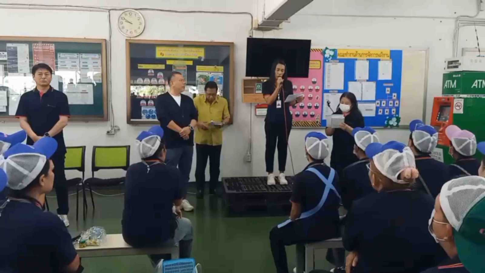 โดย ทีมบริหารของโรงงานดังกล่าวได้มีการประกาศเป็นภาษาญี่ปุ่นเพื่อแสดงความเสียใจและขอบคุณรวมถึงปัญญาถึงสถานการณ์ของการเลิกจ้างพนักงานทั้ง 606 คน ในวันนี้ ก่อนที่จะมีการเชิญเจ้าหน้าที่จากสำนักงาน ประกันสังคมจังหวัดนครปฐม โดย นางสาว สาวสุกิจจา วินิชพันธุ์ ประกันสังคมจังหวัดนครปฐม ได้มอบหมายให้นางสาวแววตา แก้วเจริญ นักวิชาการแรงงานชำนาญการพิเศษ พร้อมหน่วยงานจากกระทรวงแรงงาน ทำความขึ้นชี้แจงถึงขั้นตอนการดำเนินการในการรับค่าชดเชย ตามกฏหมาย และเตรียมตัวให้มีการขึ้นทะเบียนเป็นผู้ว่างงานได้ภายใน 30 วัน ซึ่ง ผู้ที่ได้รับการว่าจ้างชดเชยให้ยุติการทำงานในวันนี้สามารถไปขึ้นทะเบียนได้ที่สำนักงานจัดหางานจังหวัดนครปฐม โดยจะมีการดึงข้อมูลมาที่สำนักงานประกันสังคมจังหวัดนครปฐมเพื่อจ่ายเงินชดเชยให้กับพนักงานทั้งหมดในวันนี้