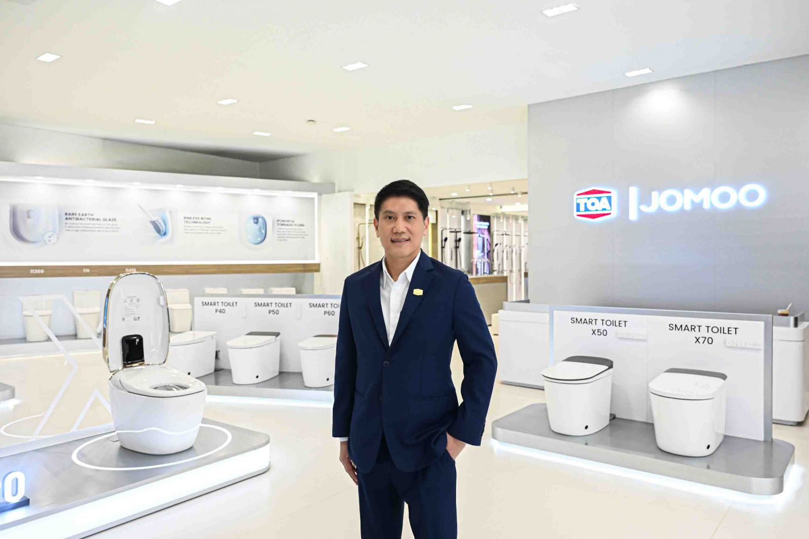 สำหรับการเปิดตัวโชว์รูมTOA I JOMOOแห่งใหม่ ณ ใจกลางสุขุมวิท 26 บนพื้นที่กว่า460 ตารางเมตรได้รับการออกแบบอย่างพิถีพิถันเพื่อตอบโจทย์แนวคิดSMART & Digital Intelligence Bathroomอย่างเต็มรูปแบบ ด้วยผลิตภัณฑ์คุณภาพสูงกว่า 300 รายการ อาทิ สุขภัณฑ์อัจฉริยะ, ก๊อกน้ำอัตโนมัติ, โถปัสสาวะชายอัตโนมัติ, ฝักบัว, อ่างอาบน้ำ และสุขภัณฑ์ที่ออกแบบมาเพื่อผู้สูงวัยและเด็กโดยเฉพาะโชว์รูมแห่งนี้ไม่เพียงแต่ตอบโจทย์ลูกค้างานโครงการเท่านั้น แต่ยังเปิดโอกาสให้ผู้บริโภคทั่วไปได้สัมผัสและทดลองใช้งานนวัตกรรมจริง เพื่อยกระดับคุณภาพชีวิตผ่านผลิตภัณฑ์ล้ำสมัยและบริการครบวงจร