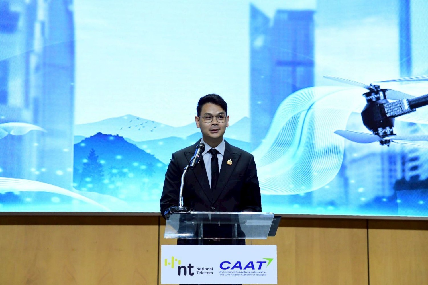 นายพิพัฒน์ รัชกิจประการ รองนายกรัฐมนตรีและรัฐมนตรีว่าการกระทรวงคมนาคม และนายไชยชนก ชิดชอบ กระทรวงดิจิทัลเพื่อเศรษฐกิจและสังคม (ดีอีเอส) ร่วมเป็นประธานเปิดงาน “การขนส่งทางอากาศยุคใหม่ด้วยอากาศยานซึ่งไม่มีนักบิน (The New Era of Drone Delivery)” เพื่อส่งเสริมนวัตกรรมขนส่งทางอากาศด้วยโดรนในเชิงพาณิชย์ โดยมี พลอากาศเอก มนัท ชวนะประยูร ผู้อำนวยการสำนักงานการบินพลเรือนแห่งประเทศไทย (CAAT) พันเอก สรรพชัย หุวะนันทน์ กรรมการผู้จัดการใหญ่ บริษัท โทรคมนาคมแห่งชาติ จำกัด (มหาชน) (NT) พร้อมด้วยผู้บริหารภาครัฐ ภาคเอกชน และผู้ประกอบการด้านเทคโนโลยีเข้าร่วมอย่างคับคั่ง เมื่อวันที่ 29 ตุลาคม 2568 ณ ห้อง Auditorium อาคาร 9 บริษัท โทรคมนาคมแห่งชาติ จำกัด (มหาชน)