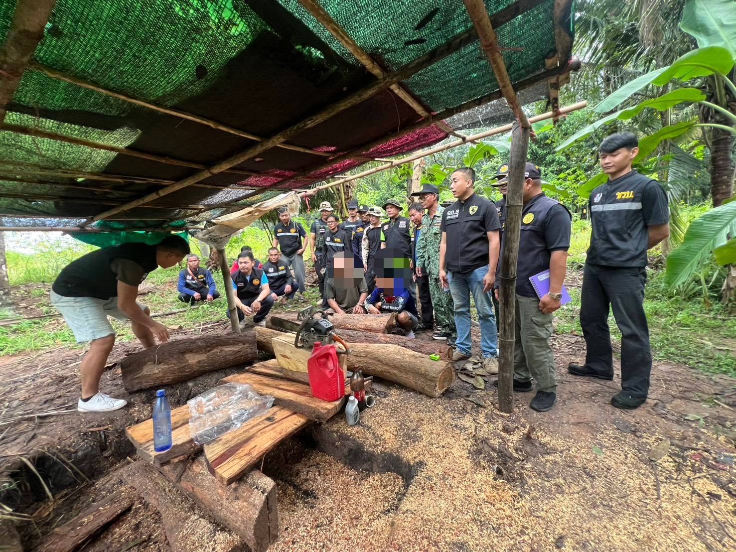 สามารถจับกุมผู้ต้องหา จำนวน 2 ราย ได้แก่นายธนภัทร หมู่ที่ 20 ตำบลบักดอง อำเภอขุนหาญ จังหวัดศรีสะเกษ และนายยศพล ที่อยู่บ้านเลขที่ 94 หมู่ที่ 8 ตำบลหนองปลิง อำเภอเลาขวัญ จังหวัดกาญจนบุรี พร้อมด้วยของกลางเป็นไม้พะยูง จำนวน 4 ท่อน ปริมาตร 0.28 ลูกบาศก์เมตร ไม้พะยูงแปรรูป จำนวน 7 เหลี่ยม/แผ่นปริมาตร 0.08 ลูกบาศก์เมตร และเลื่อยโซ่ยนต์ จำนวน 1 เครื่อง สถานที่เกิดเหตุบริเวณ บ้านเลขที่ 8 หมู่ที่ 20 ตำบลบักดอง อำเภอขุนหาญ จังหวัดศรีสะเกษ โดยกล่าวหาว่า กระทำผิดพระราชบัญญัติป่าไม้ พุทธศักราช 2484 มาตรา 11 ฐาน ร่วมกันทำให้หวงห้ามโดยไม่ได้รับอนุญาต มาตรา 48 ร่วมกันแปรรูปไม้หวงห้าม มีไม้หวงห้ามแปรรูปไว้ในครอบครอง