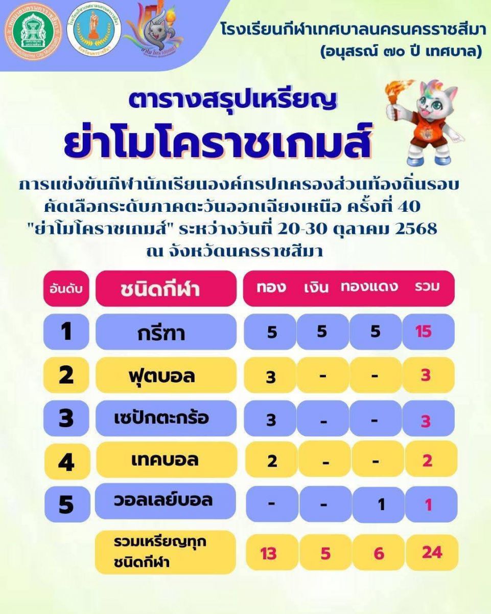 รร.กีฬาเทศบาลโคราชกวาดได้ถึง13ทอง ในศึก'ย่าโมโคราชเกมส์'