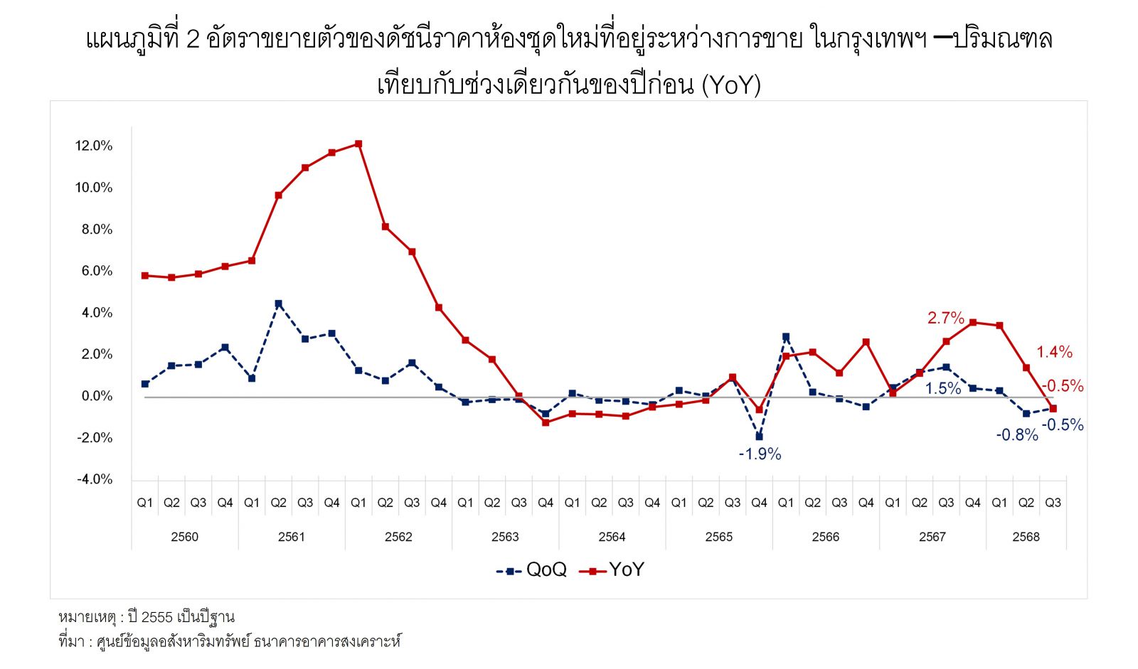 ดัชนีราคาห้องชุดใหม่ที่อยู่ระหว่างการขาย ไตรมาส3/68กทม.-ปริมณฑลลดลง0.5%