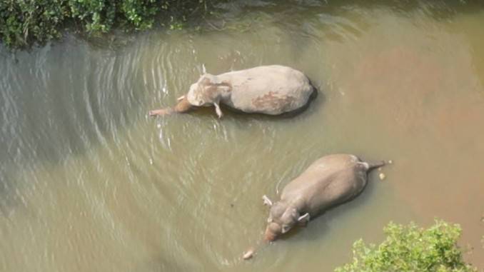 ตามรายงานพบช้าง 4 ตัวที่เข้าไปกินข้าวที่ทุ่งนาของชาวบ้าน แต่พอมาแกะรอยเจอ 2 ตัว ตัวหนึ่งมีงาข้างเดียวด้วยตัวใหญ่มากช้าง 2 ตัวตัวใหญ่มาก และรอกำลังเพื่อที่จะแกะรอยช้างและผลักดันออกจากหมู่บ้านในช่วงค่ำคืนนี้