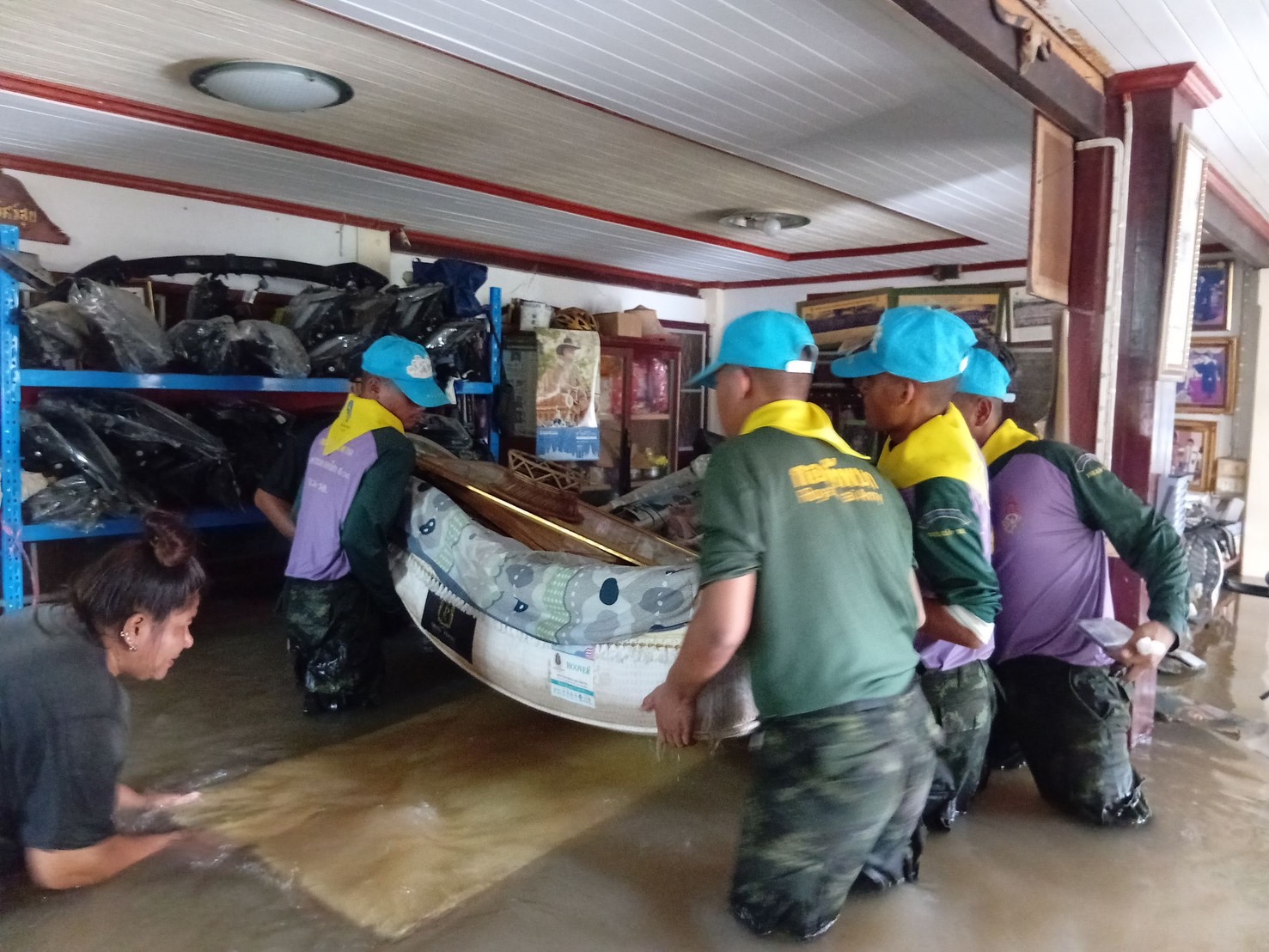 ที่อำเภอบางไทร เจ้าหน้าที่ทหารสังกัด พัน.ซบร.กรม สน.12 สนับสนุนการช่วยเหลือประชาชนและขนย้ายของขึ้นที่สูง ณ วัดไทรโสภณ ต.บ้านเกาะ ที่อำเภอบางปะอิน ม.4 พัน.5 รอ. ระดมกำลังเสริมคันกันน้ำและกรอกทรายบริเวณ พระราชวังบางปะอิน ต.บ้านเลน หลังระดับน้ำเพิ่มขึ้นต่อเนื่อง ทุกจุดผลการปฏิบัติ เป็นไปด้วยความเรียบร้อย