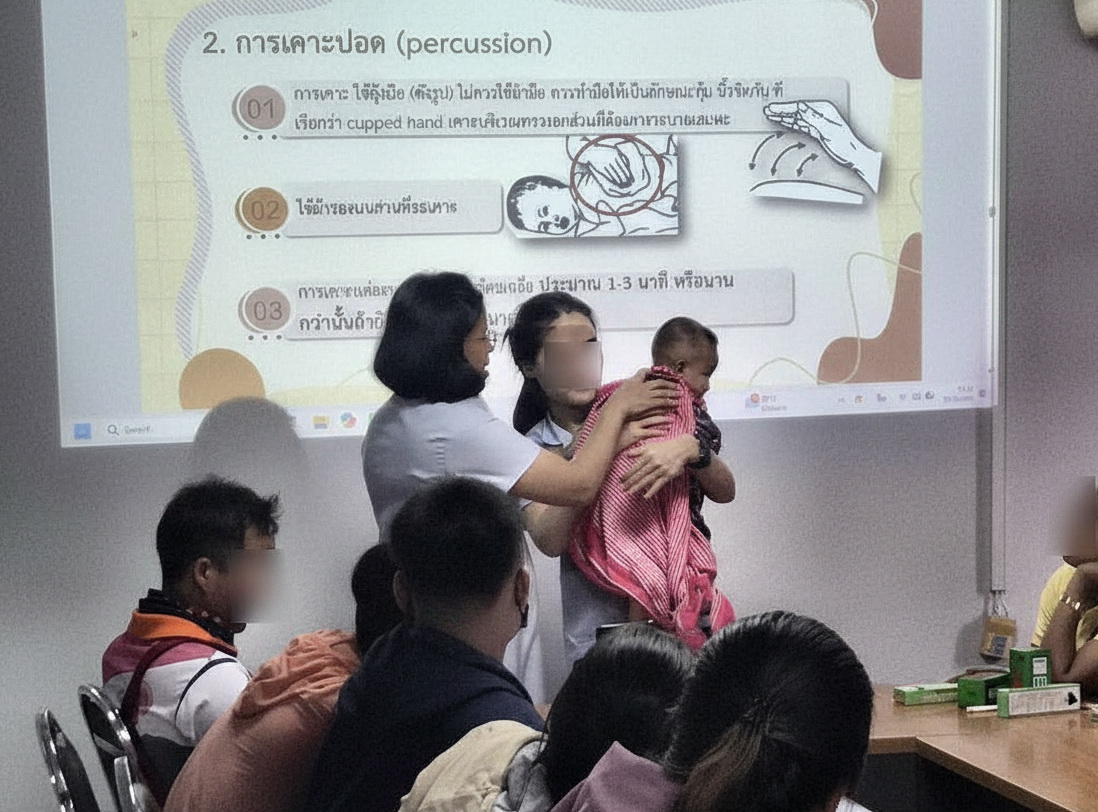 “ในพื้นที่เราจะได้เห็นเด็กที่ตัวร้อนแต่ถูกผ้าห่อไว้แน่นเพราะพ่อแม่คิดว่าเด็กหนาว หรือแม่ที่ตั้งครรภ์แต่ไม่กล้ากินอาหารที่ดีเพราะกลัวลูกตัวใหญ่คลอดยาก ความเข้าใจผิดเล็กๆ เหล่านี้กลายเป็นปัญหาชีวิต เราเลยต้องเริ่มจากการสอน อสม. ให้รู้จริง รู้ลึก และสามารถอธิบายให้คนในหมู่บ้านเข้าใจได้ โดยให้ลงมือทำจริงในพื้นที่ ไม่ใช่แค่เรียนในห้องประชุม” นายบวรศักดิ์ เล่าถึงสิ่งแรกๆ ที่โครงการเข้าไปทำงาน