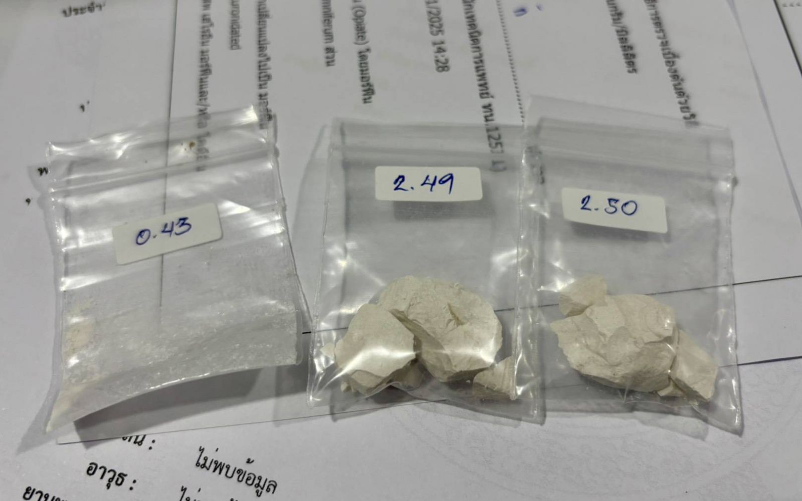 จากการตรวจค้นสามารถจับกุมนายนิมิตร หรือ “ซี่” อายุ 30 ปี พร้อมของกลางยาเสพติดให้โทษประเภท 1 (เฮโรอีน) รวม 3 ถุง ลักษณะเป็นผงและก้อนสีขาวขุ่น น้ำหนักรวมกว่า 5.42 กรัม
