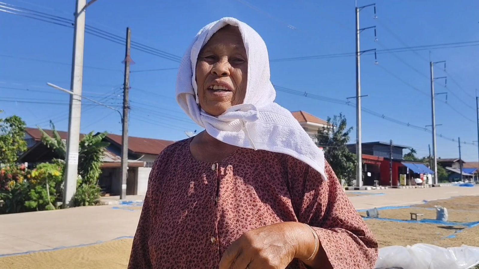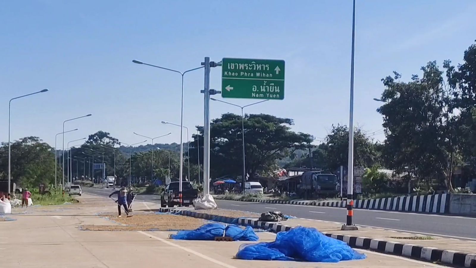 ชาวบ้านภูมิซรอลเร่งตากข้าวกลางถนน หวั่นสถานการณ์ชายแดนปะทุอีกรอบ