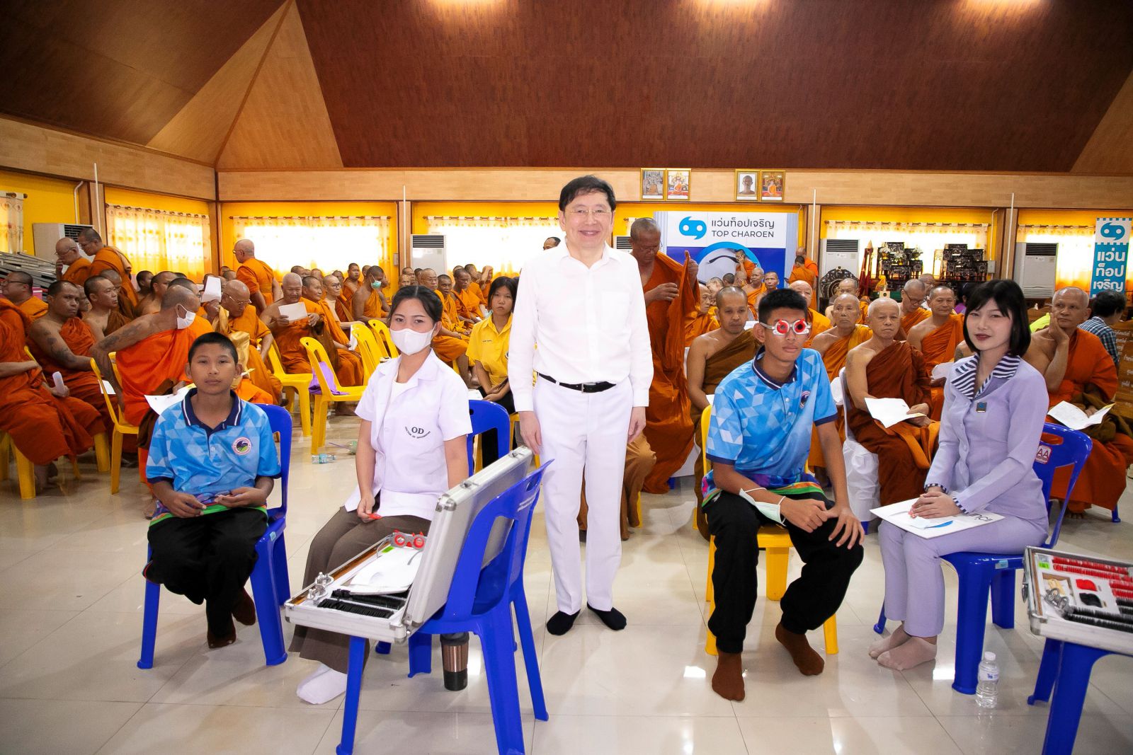 กรุงเทพฯ-แว่นท็อปเจริญ นำโดย นายนพศักดิ์ ตรีพรชัยศักดิ์ ประธานเจ้าหน้าที่บริหาร แว่นท็อปเจริญ - บริษัท ร่วมเจริญพัฒนา จำกัด (มหาชน) ยกขบวนหมอสายตา นักทัศนมาตร และผู้เชี่ยวชาญด้านสายตา พร้อมเครื่องมือตรวจวัดที่ครบครัน ลงพื้นที่ให้บริการตรวจวัดสายตาและตัดแว่นประกอบเลนส์ฟรี แก่พระภิกษุสงฆ์ เยาวชนและประชาชนชาวอำเภอแก่งคอย จังหวัดสระบุรี จำนวนกว่า 250 ราย เพื่อช่วยเหลือด้านสายตาและสร้างความสุขให้คนในชุมชน เฉลิมพระเกียรติพระบาทสมเด็จพระวชิรเกล้าเจ้าอยู่หัว รัชกาลที่ 10 ที่ทรงมีพระมหากรุณาธิคุณห่วงใยต่อสุขภาพและคุณภาพชีวิตของพสกนิกรทุกหมู่เหล่า พร้อมทั้งได้บริจาคเงินให้แก่วัดและมูลนิธิในจังหวัดสระบุรี เพื่อทำนุบำรุงพระพุทธศาสนาและนำไปช่วยเหลือประชาชนที่ได้รับความเดือดร้อนต่อไป