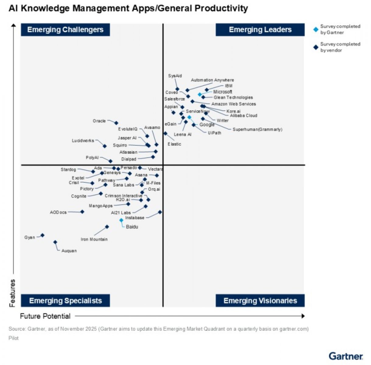 Gartner ระบุว่า Emerging Market Quadrant คือ “การจัดวางตำแหน่งผู้ให้บริการด้าน generative AI” ใน “ตลาดที่มีพลวัตและเคลื่อนไหวอย่างรวดเร็ว” และโดยทั่วไป “Emerging Leader มักเป็นผู้ให้บริการที่เป็นที่รู้จักในตลาดที่มาพร้อมคุณสมบัติต่าง ๆ ที่แข็งแกร่งและมีศักยภาพในอนาคต”