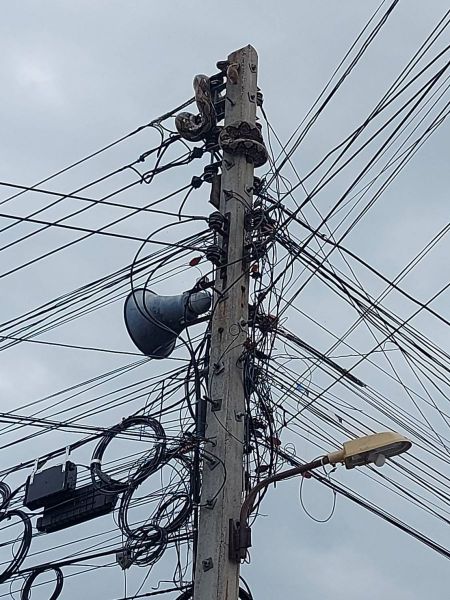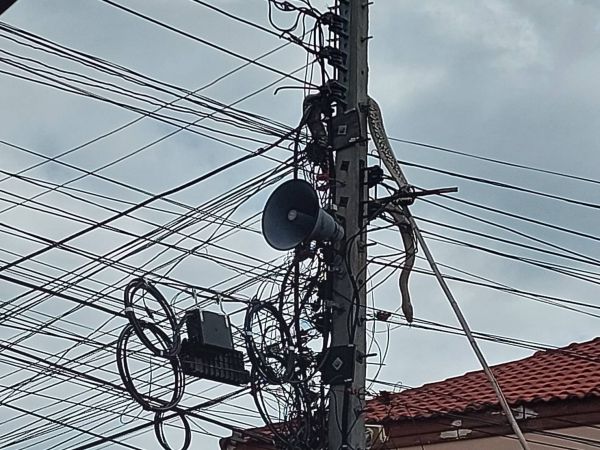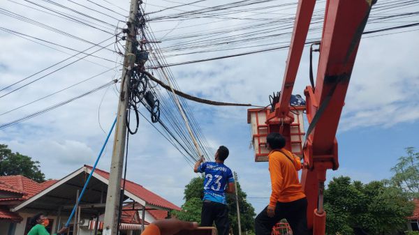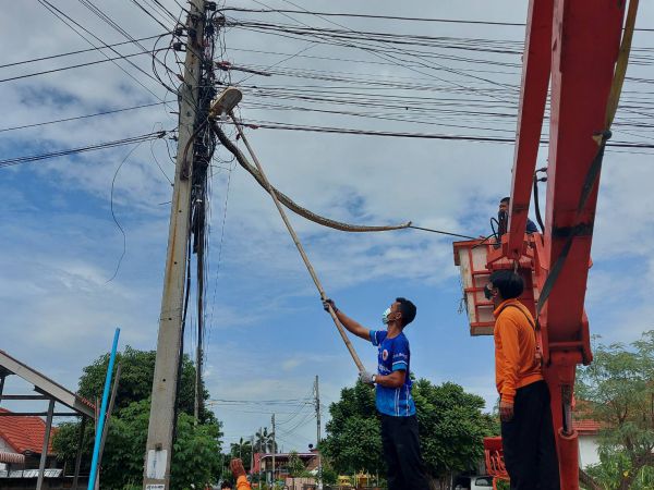 สิงห์บุรี-งูเหลือมตัวใหญ่ปีนเสาไฟฟ้า อาสาฯวุ่นหนักหารถกระเช้าเพื่อนำตัวลงมา