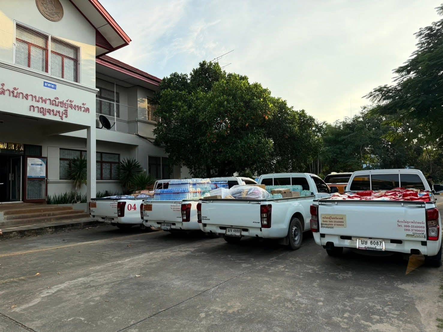 บรรยากาศบริเวณสำนักงานพาณิชย์จังหวัดกาญจนบุรีเป็นไปอย่างคึกคักตั้งแต่ช่วงเช้า มีประชาชนและหน่วยงานต่าง ๆ ทยอยเดินทางนำสิ่งของมาร่วมบริจาคอย่างต่อเนื่อง หลายรายนำข้าวสาร น้ำดื่ม และของใช้จำเป็นมาส่งมอบด้วยตนเอง พร้อมให้กำลังใจเจ้าหน้าที่ผู้ปฏิบัติงานในการเร่งช่วยเหลือผู้ประสบภัย