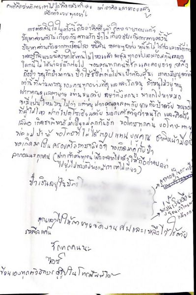 ภายในจดหมายยังเขียนข้อความฝากให้ป๋า ดูแลตากับยาย พร้อมเขียนรหัสบัตร ATM จำนวน 3 ใบไว้ให้ป๋า เป็นคนกดเอาไปจัดงานศพ และลงท้ายยืนยันว่าทุกตัวอักษร เขียนเองทั้งหมด