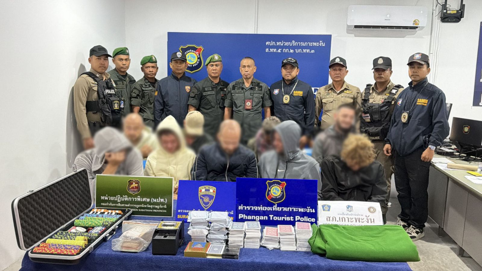 สุราษฏร์ธานี-ตร.ทท.บูรณาการบุกทลายบ่อน รวบแก๊งต่างชาติ 10 คน ลักลอบเล่นพนันโป๊กเกอร์กลางเกาะพะงัน ยึดเงินสดเกือบ 1.4 แสนบาท