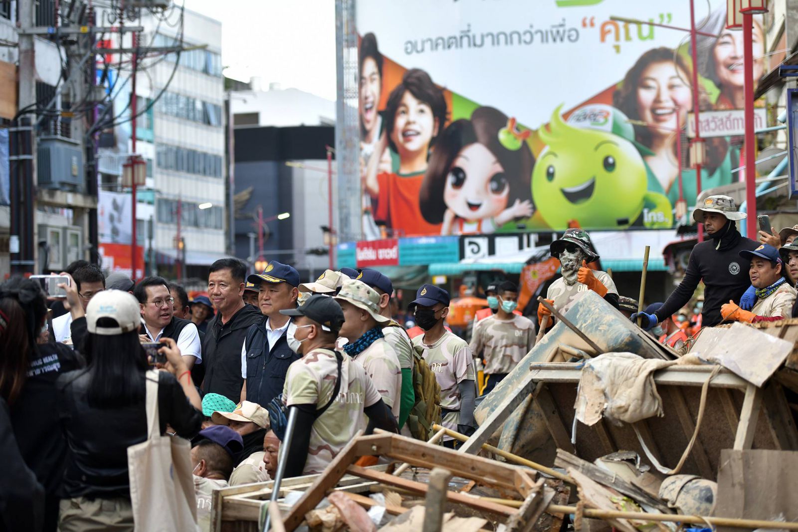 คณะที่ร่วมลงพื้นที่ประกอบด้วยนายพิพัฒน์ รัชกิจประการ รองนายกรัฐมนตรีและรัฐมนตรีว่าการกระทรวงคมนาคม นายบวรศักดิ์ อุวรรณโณ รองนายกรัฐมนตรี นายพัฒนา พร้อมพัฒน์ รัฐมนตรีว่าการกระทรวงสาธารณสุข นายศักดิ์ดา วิเชียรศิลป์ รัฐมนตรีช่วยว่าการกระทรวงมหาดไทย นางสาวไตรศุลี ไตรสรณกุล เลขาธิการนายกรัฐมนตรี นายอรรษิษฐ์ สัมพันธรัตน์ ปลัดกระทรวงมหาดไทย นายดนุชา พิชยนันท์ เลขาธิการสภาพัฒนาการเศรษฐกิจและสังคมแห่งชาติ นายนฤชา โฆษาศิวิไลซ์ อธิบดีกรมการปกครอง นายธีรพัฒน์ คัชมาตย์ อธิบดีกรมป้องกันและบรรเทาสาธารณภัย นายมงคล ตรีกิจจานนท์ ผู้ว่าการการไฟฟ้าส่วนภูมิภาค นายจักรพงศ์ คำจันทร์ ผู้ว่าการการประปาส่วนภูมิภาค และหน่วยงานที่เกี่ยวข้องเข้าร่วมลงพื้นที่ในครั้งนี้