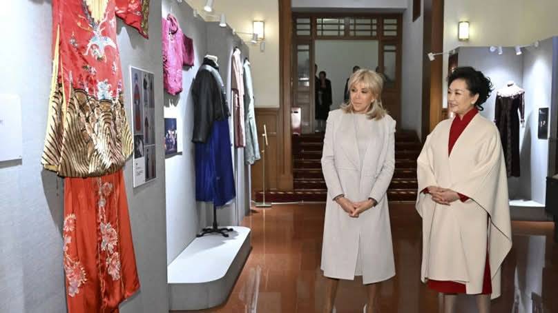 มาดามเผิง ลี่หยวน ภริยาสี จิ้นผิง และ บริจิตต์ มาครง ภริยาประธานาธิบดีฝรั่งเศส เยี่ยมชมโรงละครศิลปะประชาชนปักกิ่ง เสริมสร้างความสัมพันธ์ทางวัฒนธรรม
